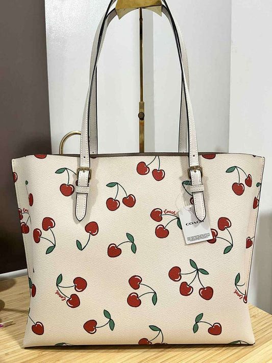 ORIG Preloved Coach Mollie Tote With Heart Cherry Print Large White Bag