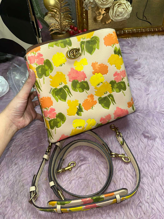 ORIG Preloved Coach RARE Willow Bucket Yellow/Beige Bag with Floral Print