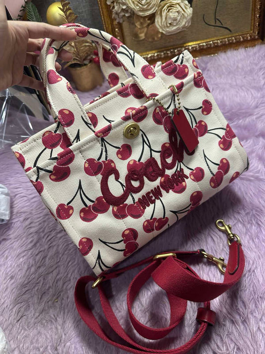 ORIG Preloved Coach RARE Cargo White Tote Bag 26 With Cherry Print