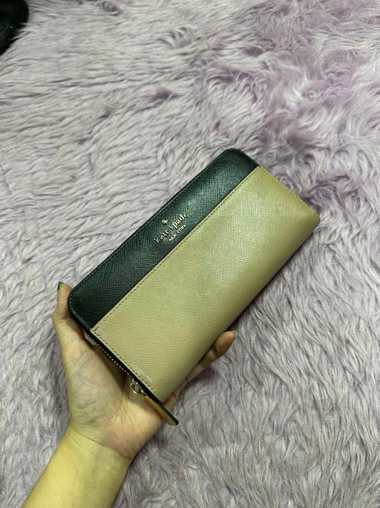ORIG Preloved Kate Spade KS Staci Colorblock Large Continental Long Beige Wallet