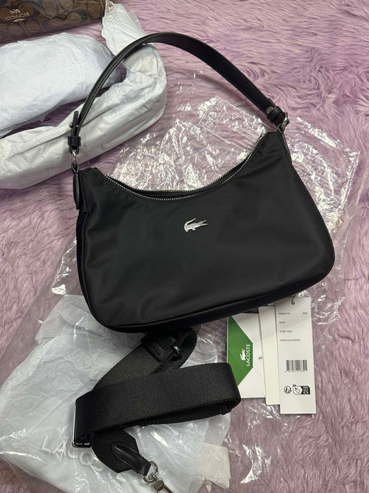 ORIG Preloved Lacoste Izzie Shoulder Black Nylon Bag