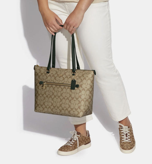 ORIG Preloved Coach Gallery Tote Large Brown/Green Bag