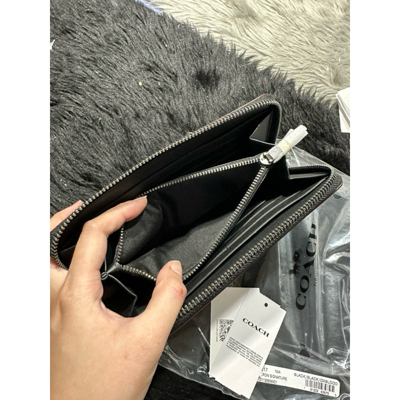 AUTHENTIC/ORIGINAL COACH Accordion Long Men's Wallet In Signature Canvas Black