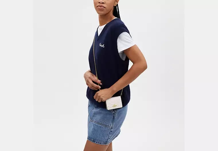 AUTHENTIC/ORIGINAL COACH Mini Wallet On A Chain In Signature Leather - Gold/Chalk
