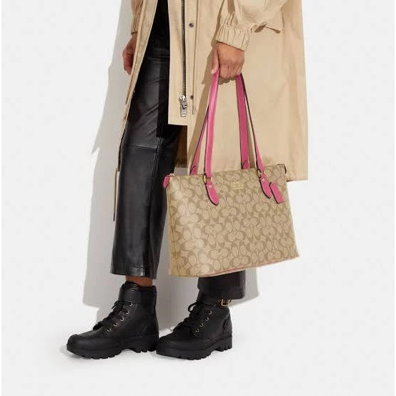 AUTHENTIC/ORIGINAL COACH New Gallery Tote Bag in Signature Light Khaki Pink