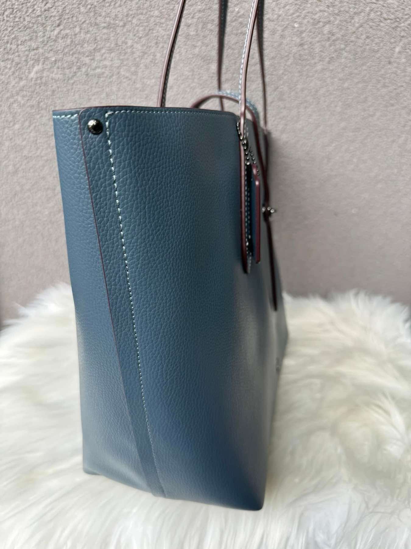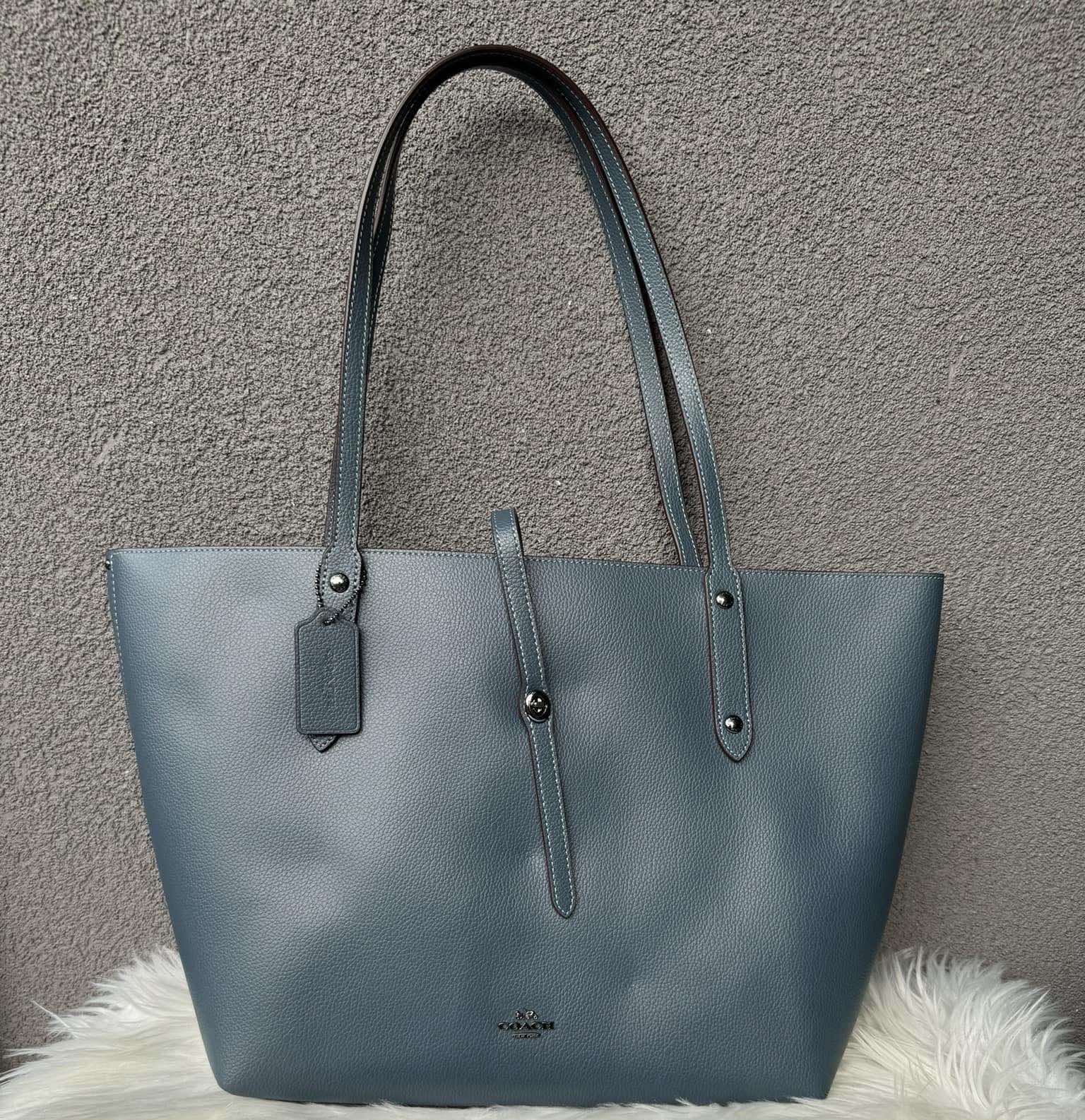 AUTHENTIC/ORIGINAL Coach Retail Market Tote Leather Large Bag Chambray Blue