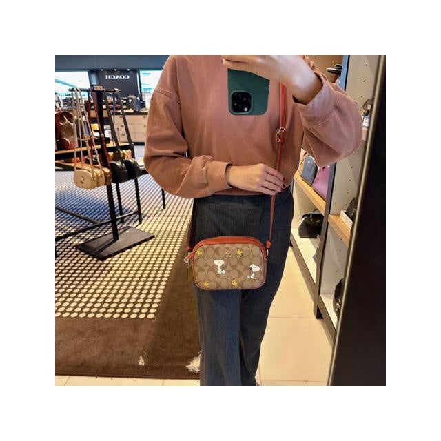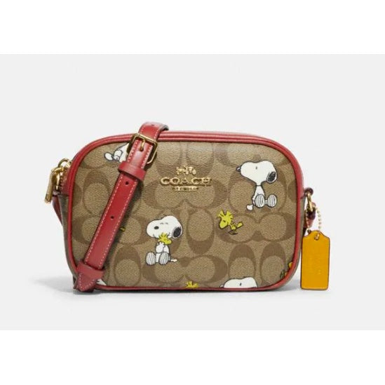 AUTHENTIC/ORIGINAL Coach X Peanuts Mini Jamie Camera Bag In Signature Canvas With Snoopy Woodstock P