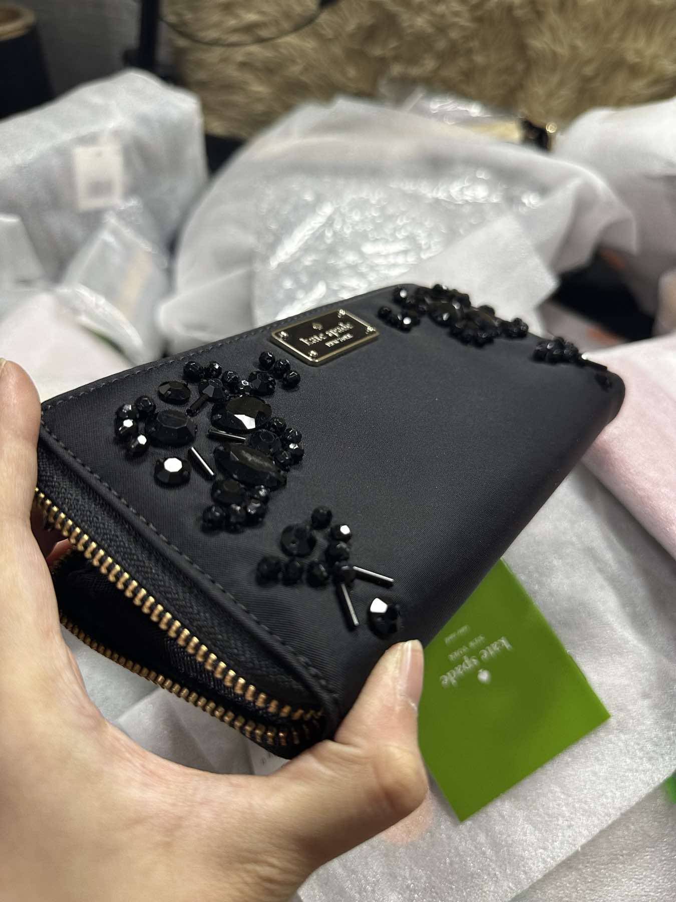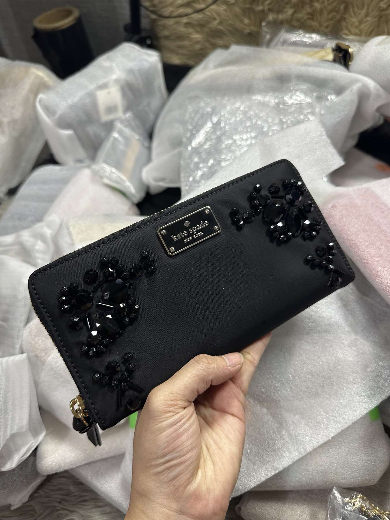 AUTHENTIC/ORIGINAL KateSpade KS Wilson Road Neda Embelished Long Nylon Wallet Black