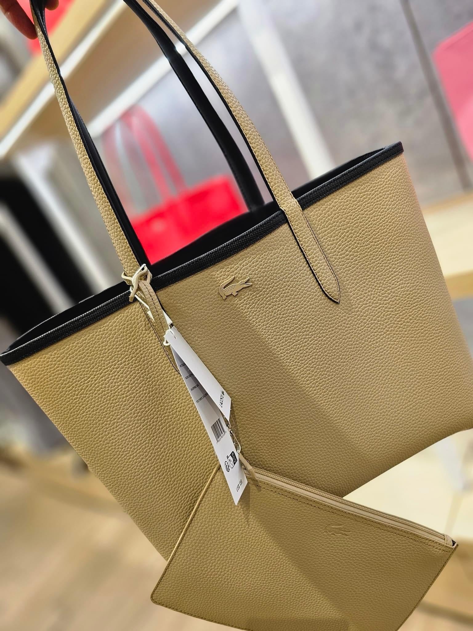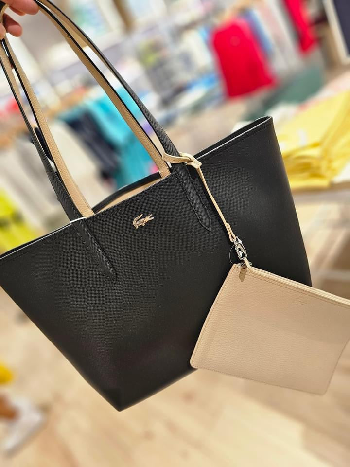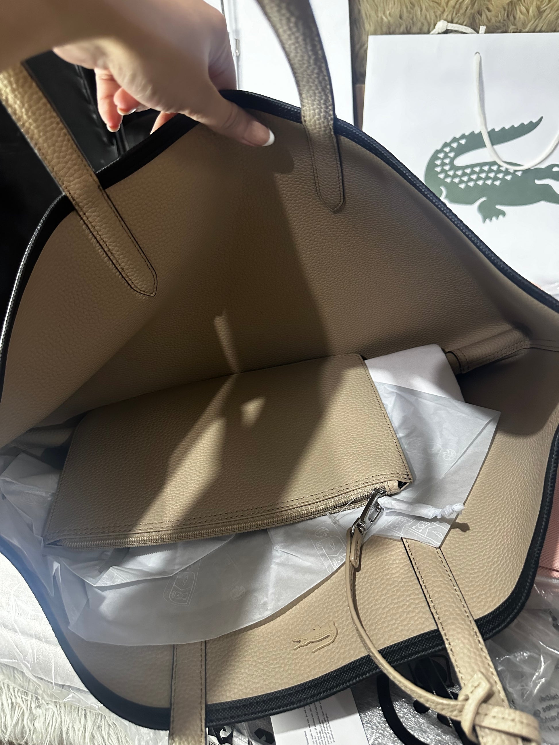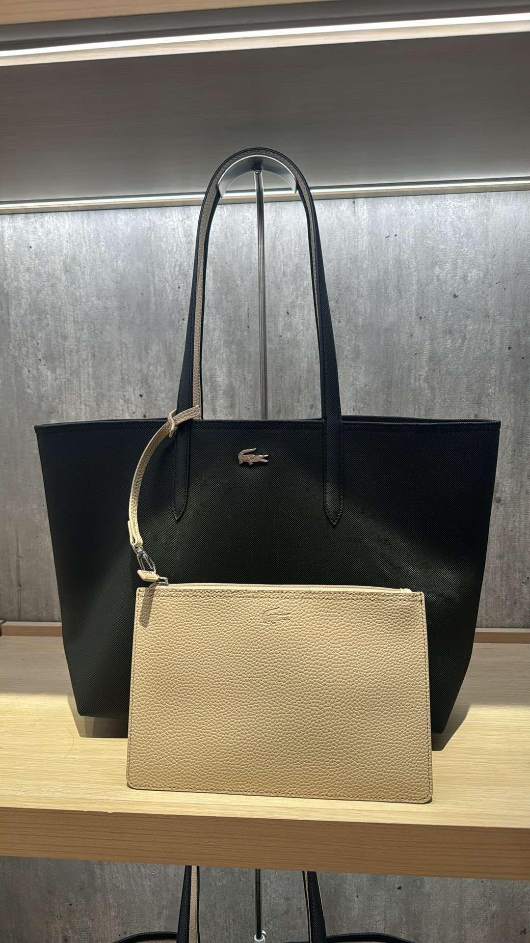 AUTHENTIC/ORIGINAL Lacoste Anna Reversible Bocolor Tote Bag in Brown/Cream White/Navy/Black