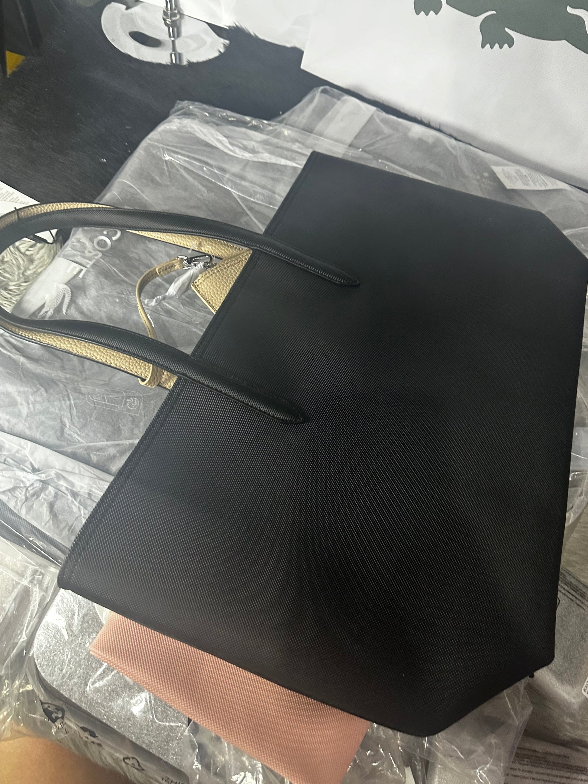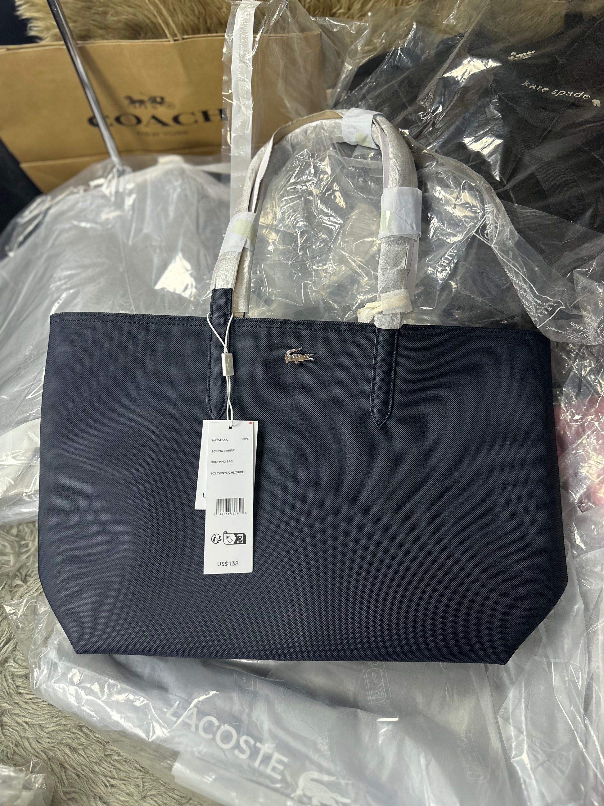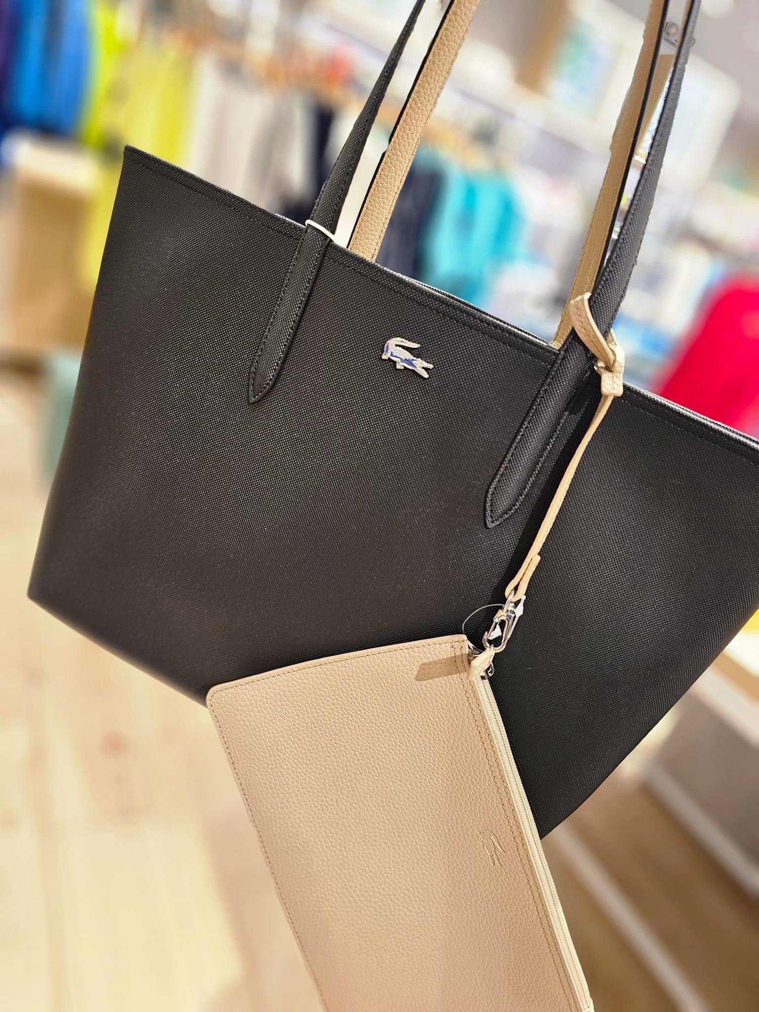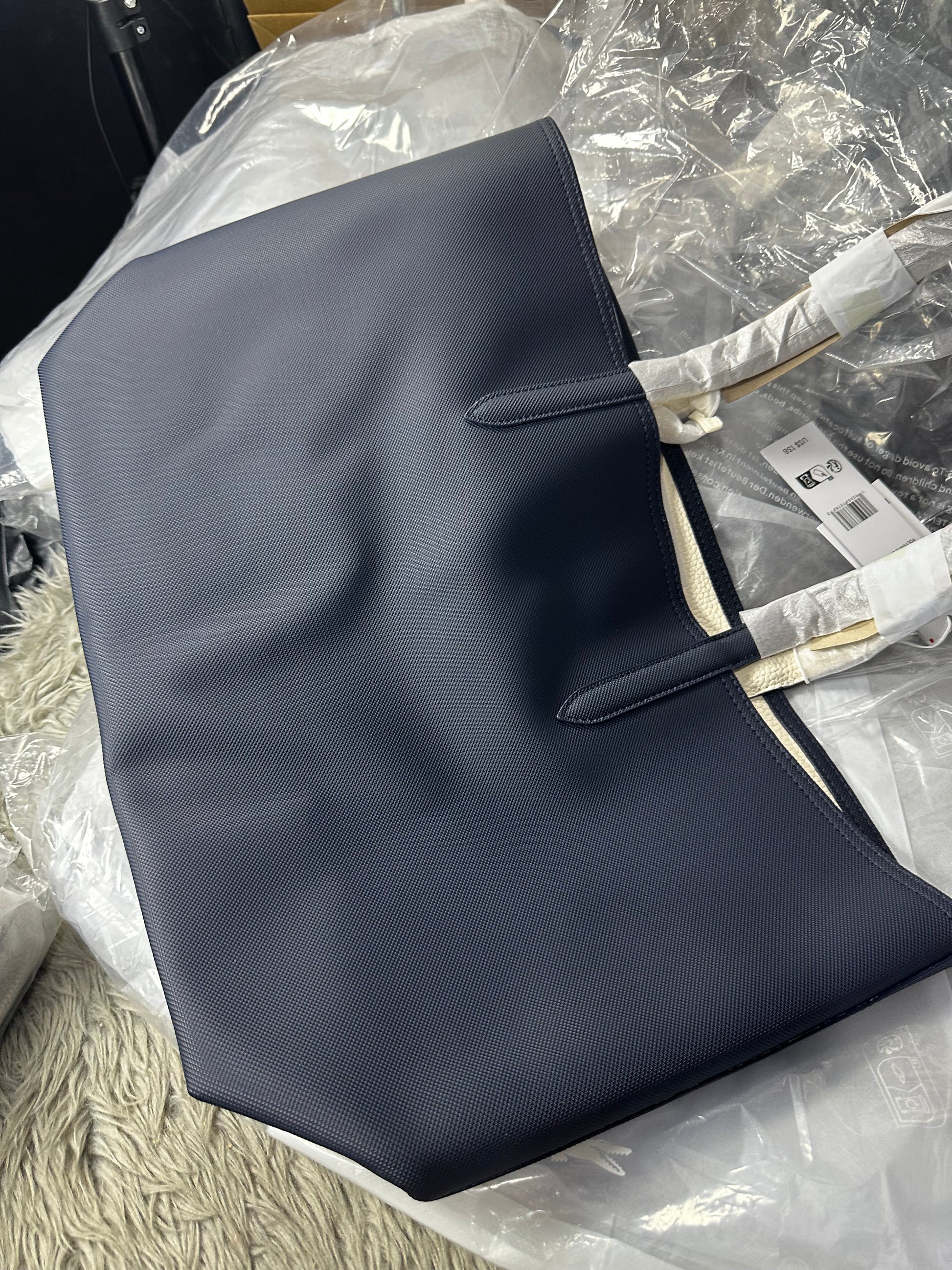 AUTHENTIC/ORIGINAL Lacoste Anna Reversible Bocolor Tote Bag in Brown/Cream White/Navy/Black