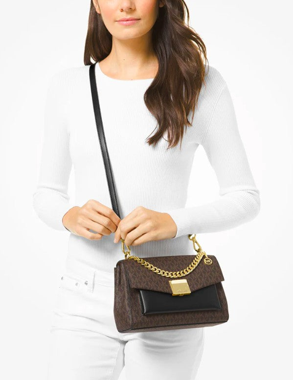 AUTHENTIC/ORIGINAL Preloved MK Lita Medium Two-Tone Logo Crossbody Bag Brown/Black