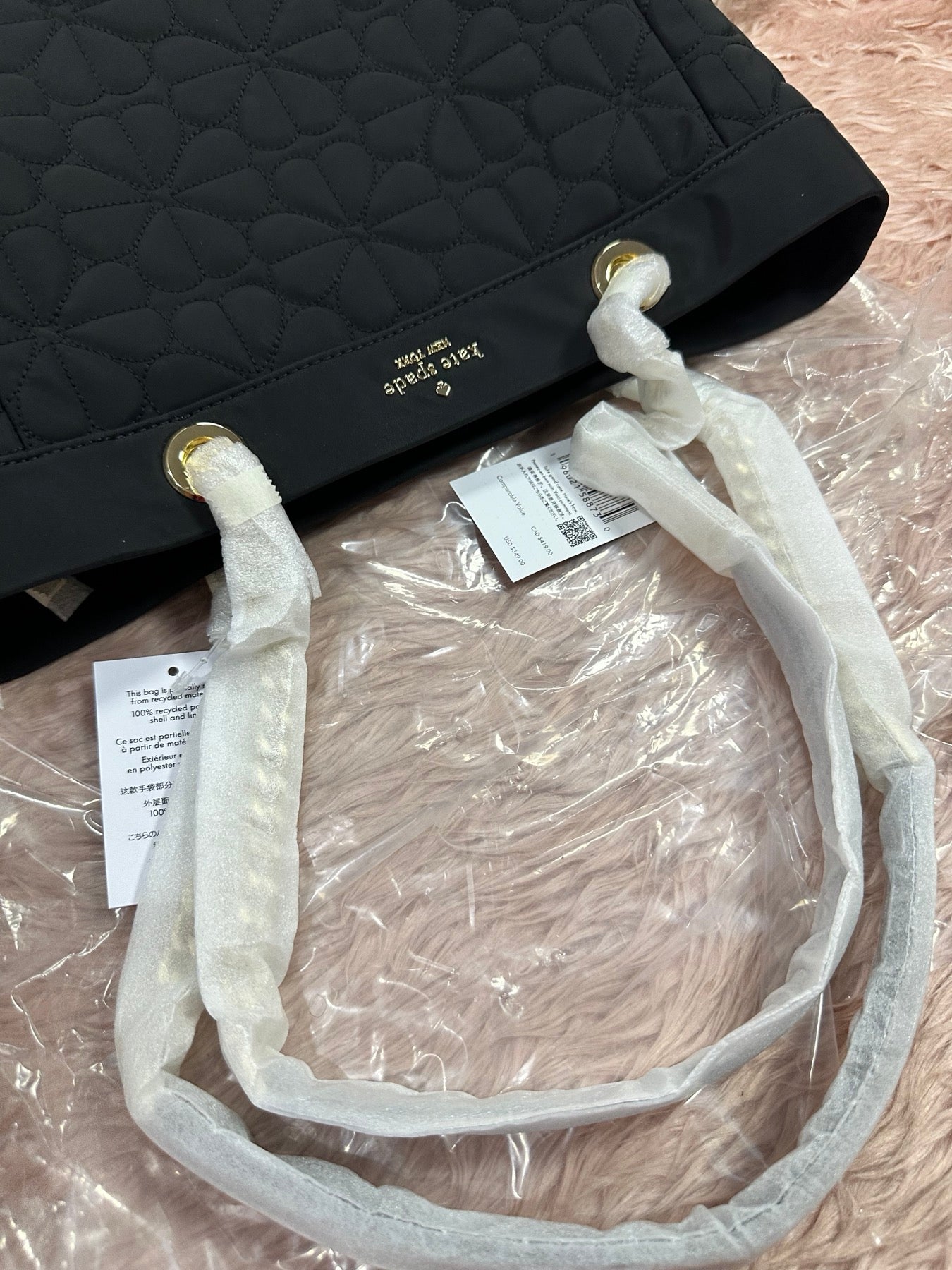 ORIG & IMPORTED KS Spade Flower Quilted Fabric Medium Tote Black Bag