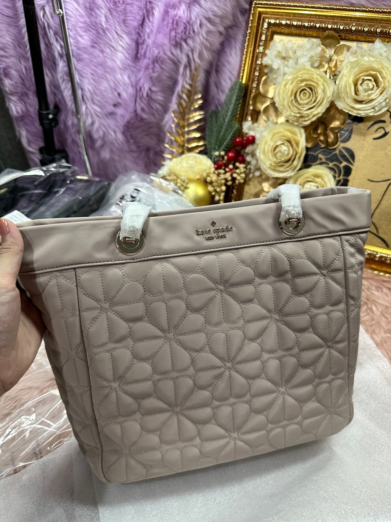 ORIG & IMPORTED KS Spade Flower Quilted Fabric Medium Tote Cozy Grey Bag