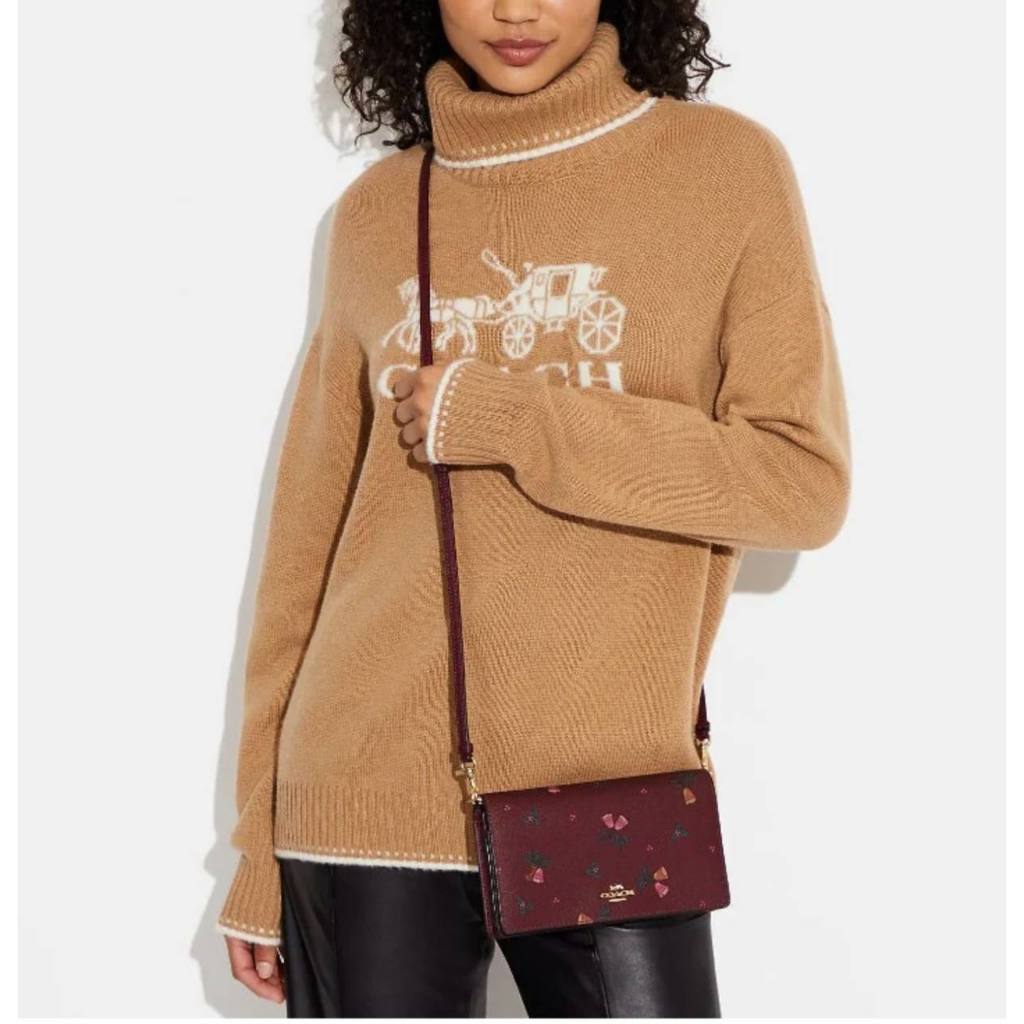 ORIG & IMPORTED CCH Anna Foldover Clutch Bag With Bells Print in Maroon Cherry