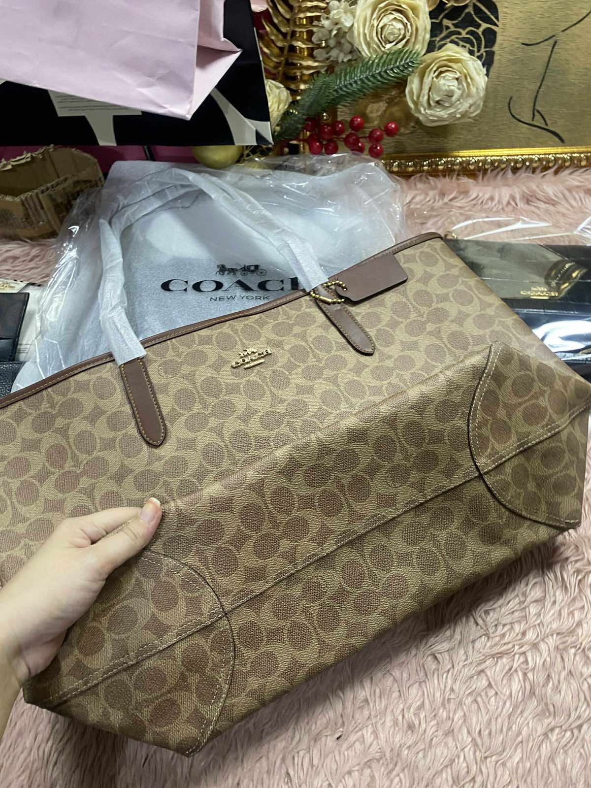 ORIG & IMPORTED Coach City Tote Large Bag In Signature Canvas Khaki Brown