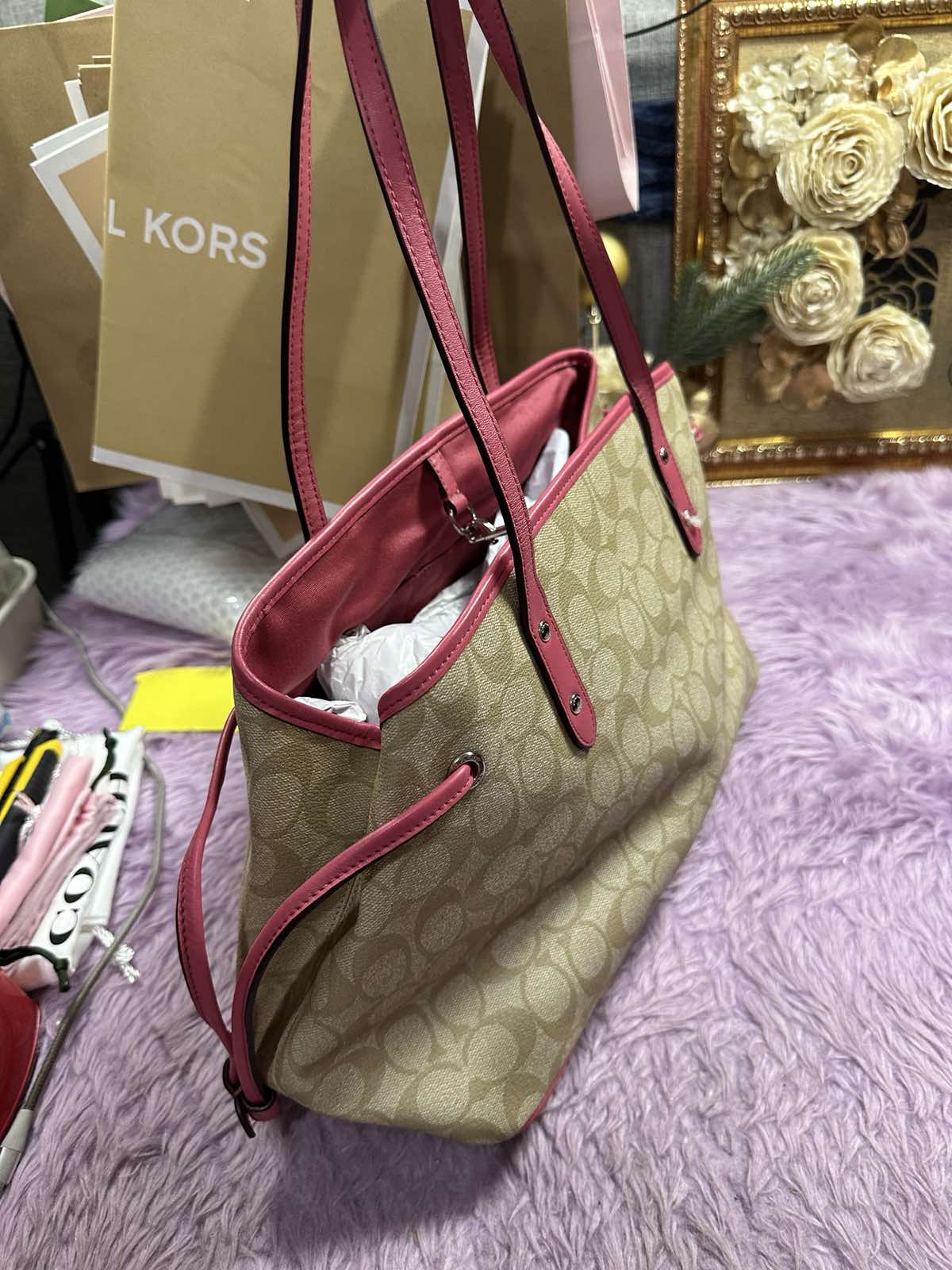 ORIG & IMPORTED Coach Drawstring Carryall Light Khaki/Pink Tote Bag