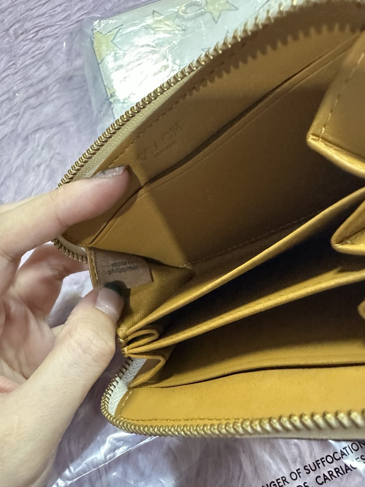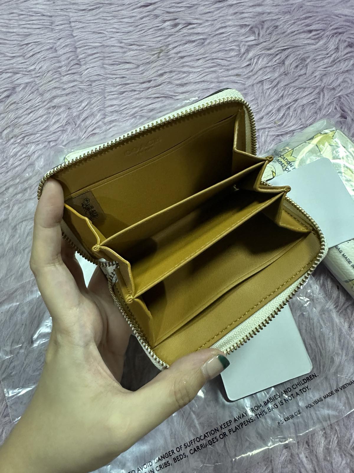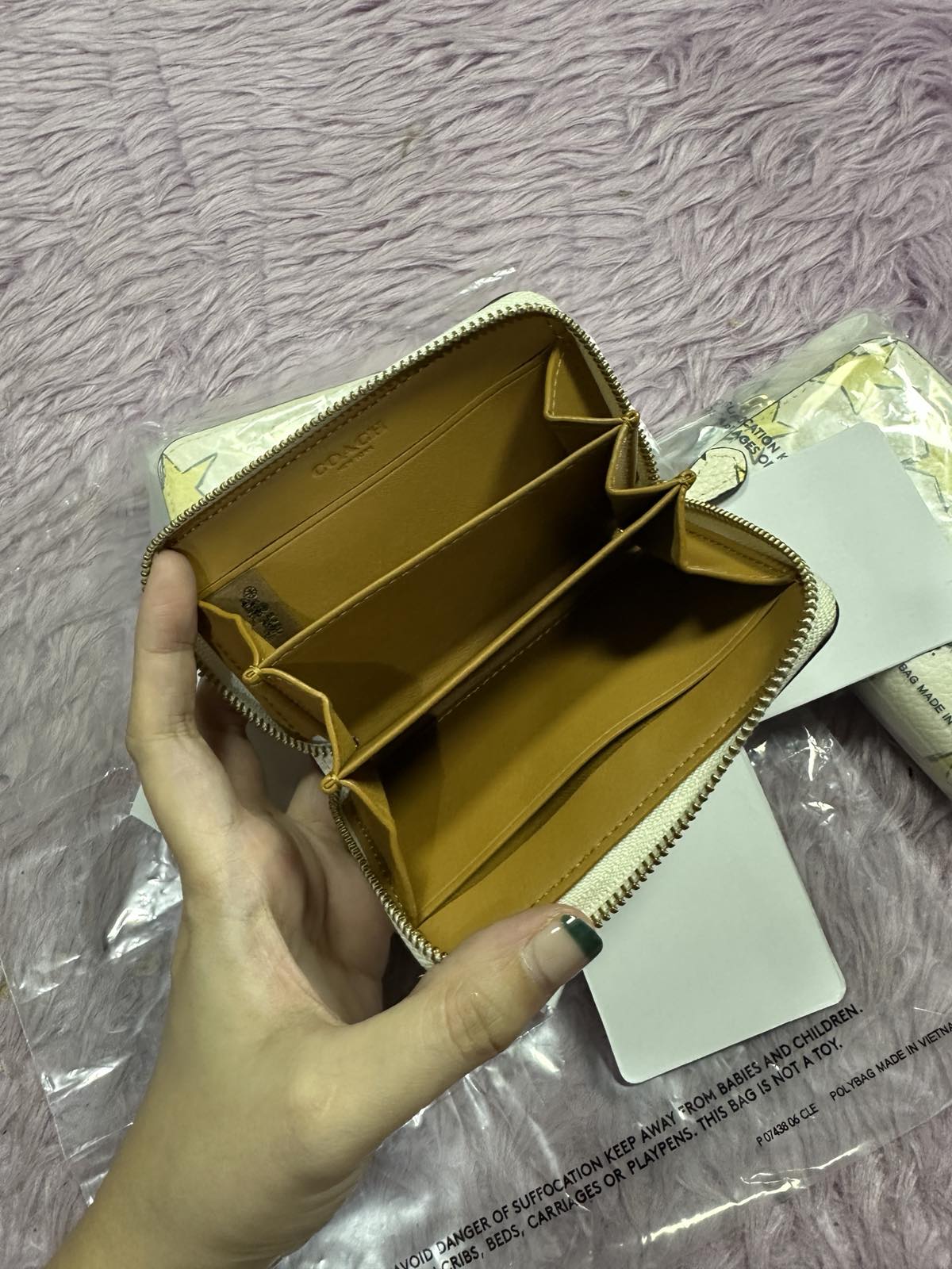 ORIG & IMPORTED Coach Essential Small Zip Around Card Case Star Print White Wallet