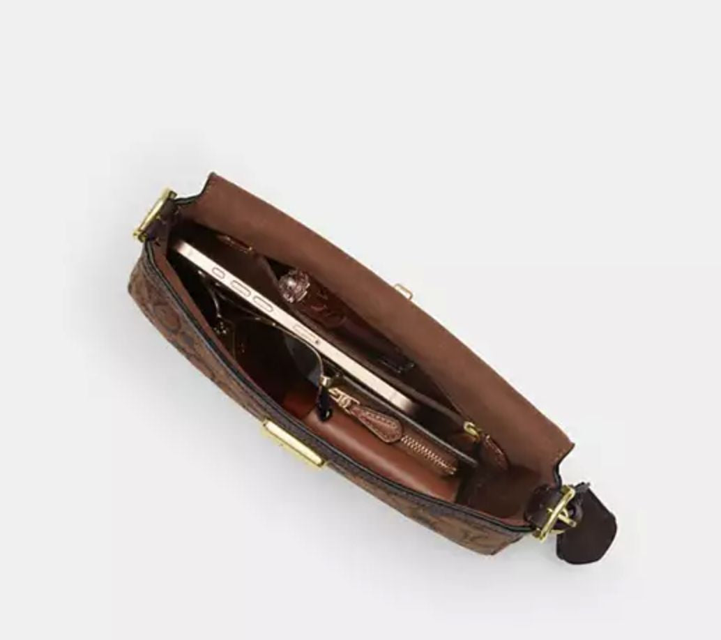 ORIG & IMPORTED Coach Etta Small Flap Shoulder Brown Bag In Signature Chenille