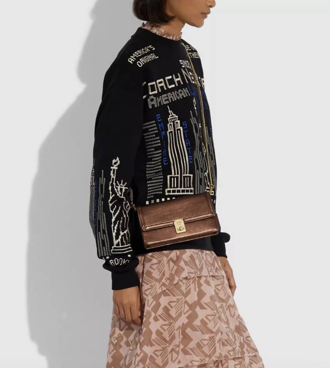 Detachable chain strap with 22 1/2" drop for shoulder or crossbody wear