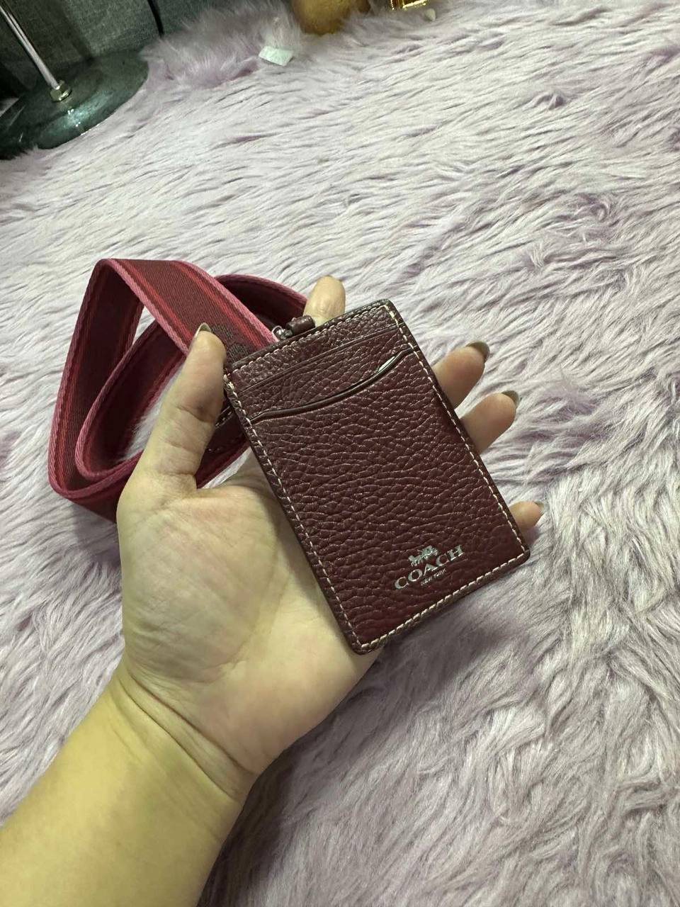 ORIG & IMPORTED Coach Leather ID Lanyard Wine Maroon