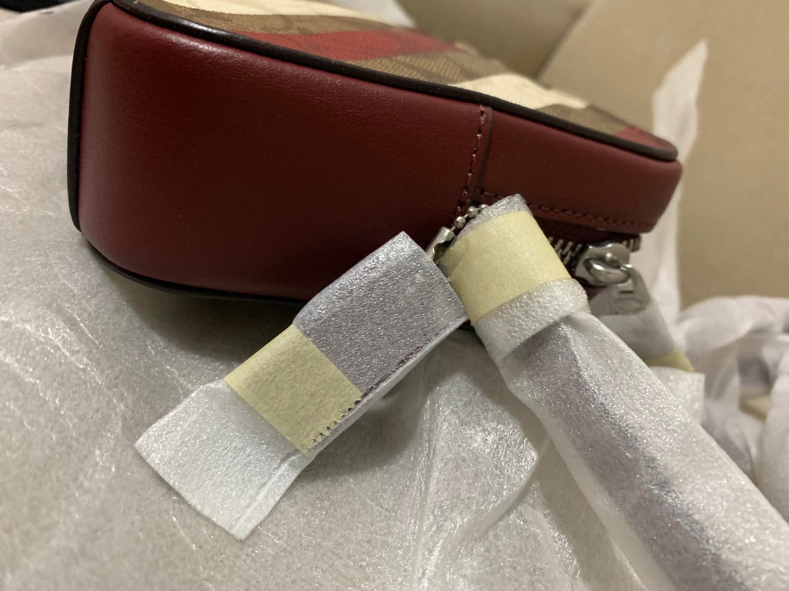 ORIG & IMPORTED Coach Mini Camera Red Bag With Diagonal Stripe Print