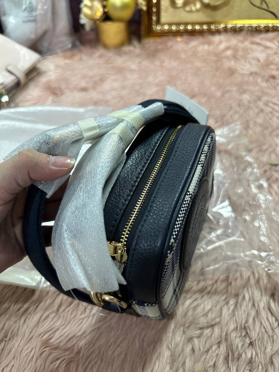ORIG & IMPORTED COACH Mini Dempsey Camera Black Bag With Plaid Print