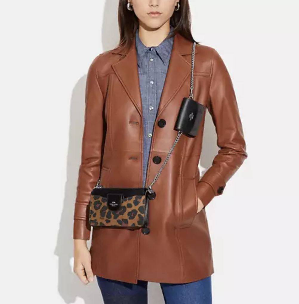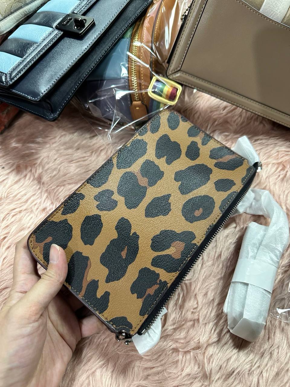 ORIG & IMPORTED COACH Poppy Crossbody Small Slim Bag With Card Case Leopard Print Brown