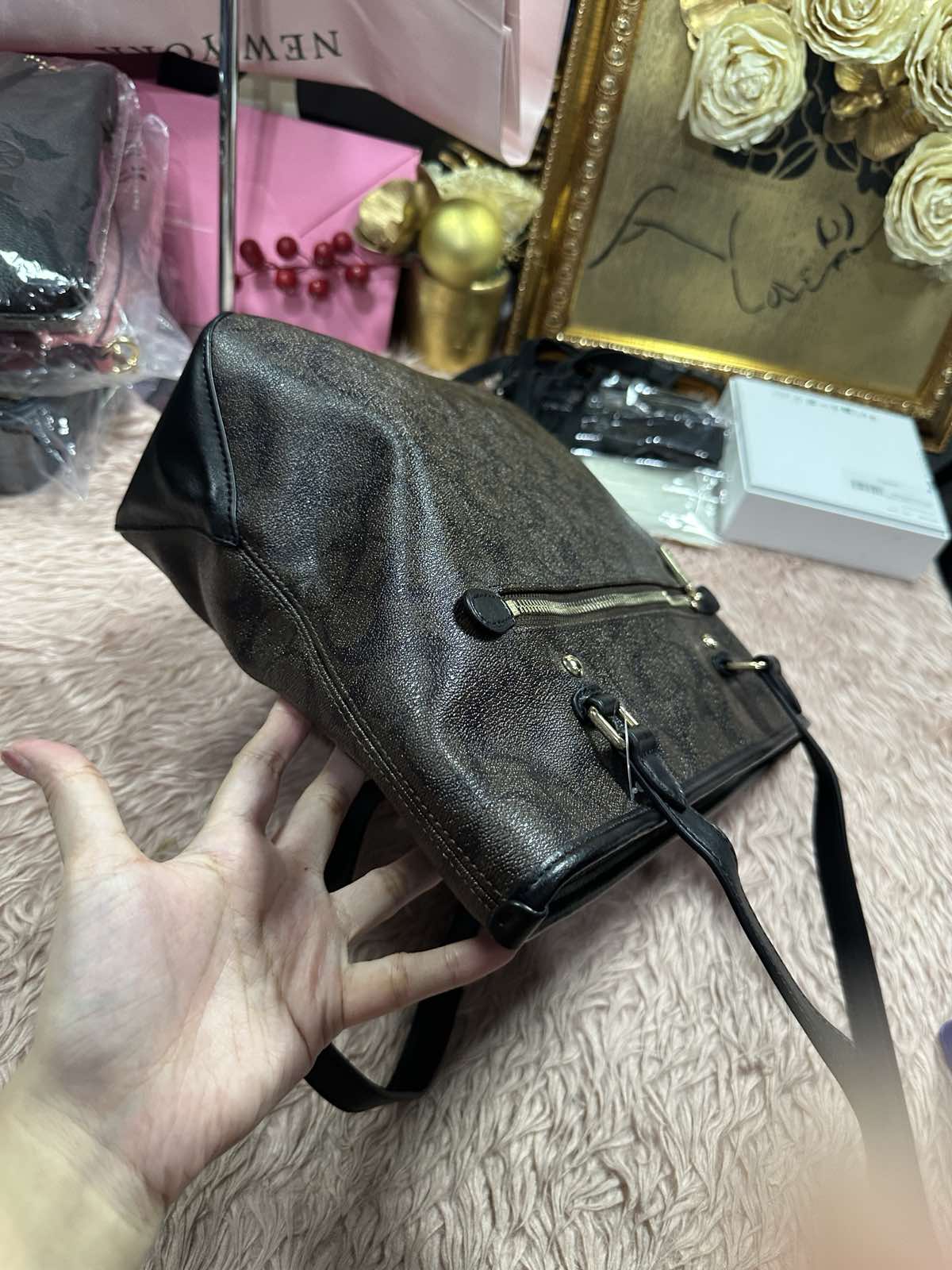 ORIG & IMPORTED Coach RARE F34603 Signature Canvas Zip Top Brown Medium Bag