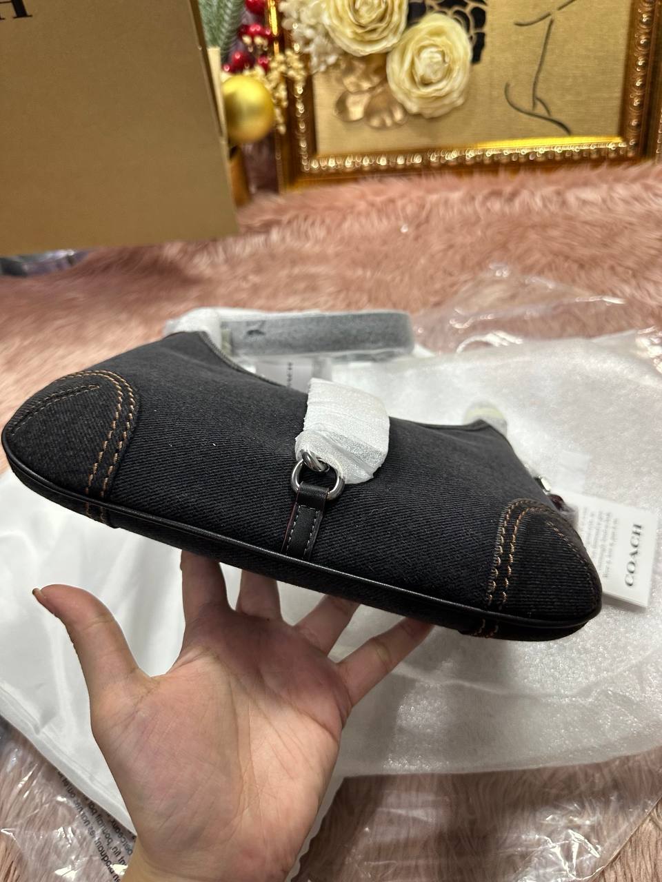ORIG & IMPORTED COACH Retail Denim Hamptons Hobo Shoulder Black Bag