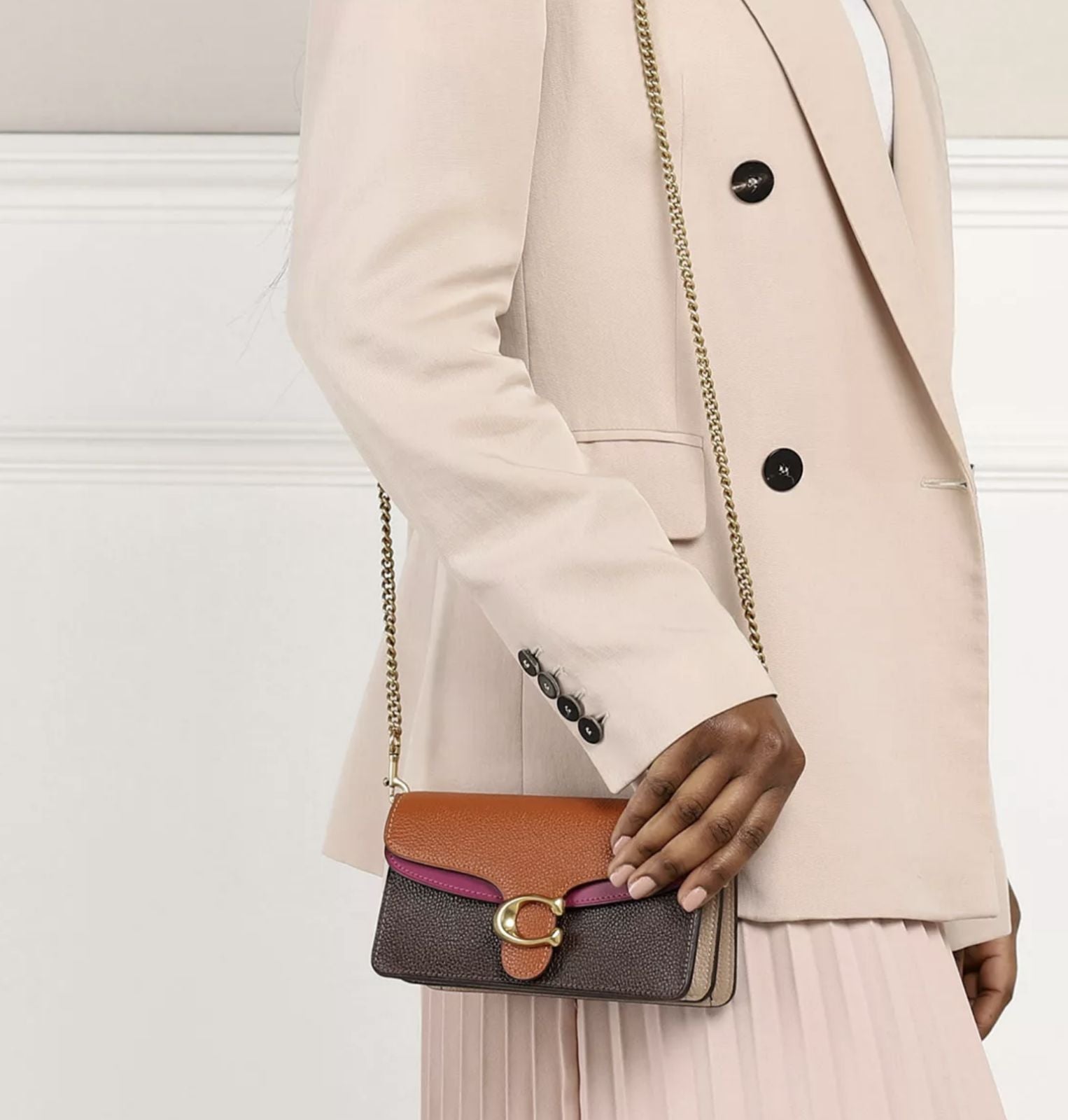 Detachable chain strap with 23" drop for shoulder or crossbody wear