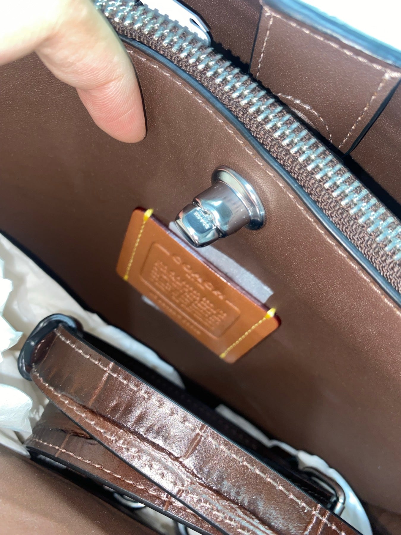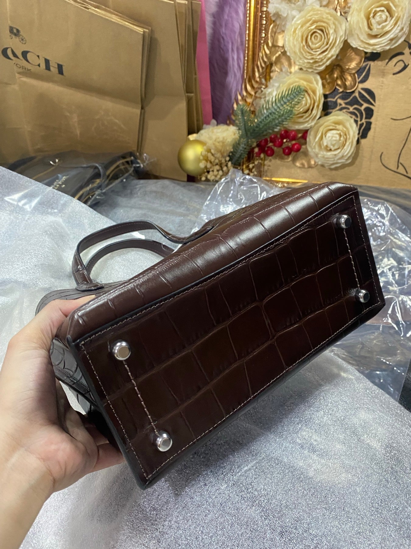 ORIG & IMPORTED COACH Retail Willow 24 Tote Bag in Croc-embossed Leather Maroon Maple Brown