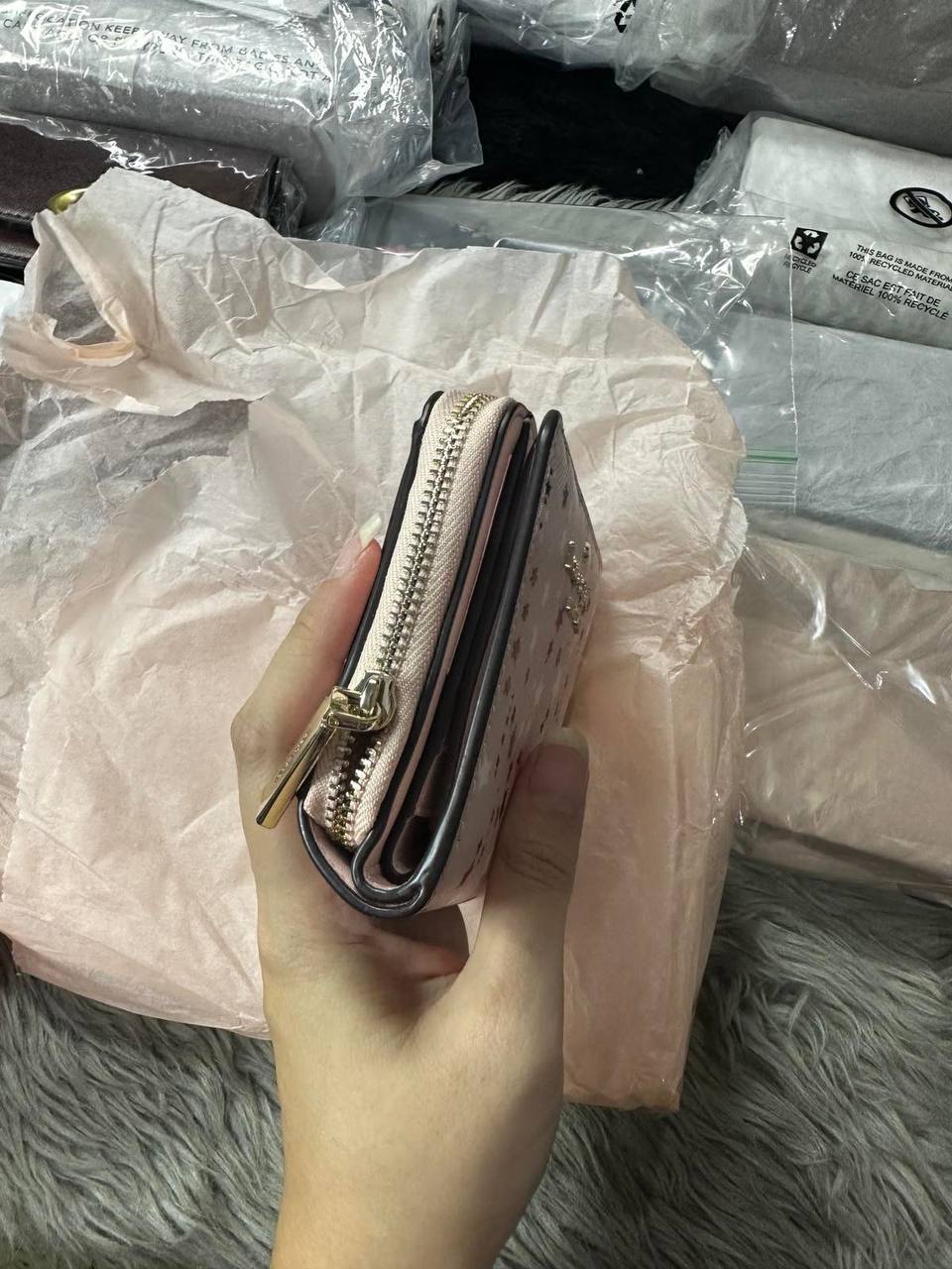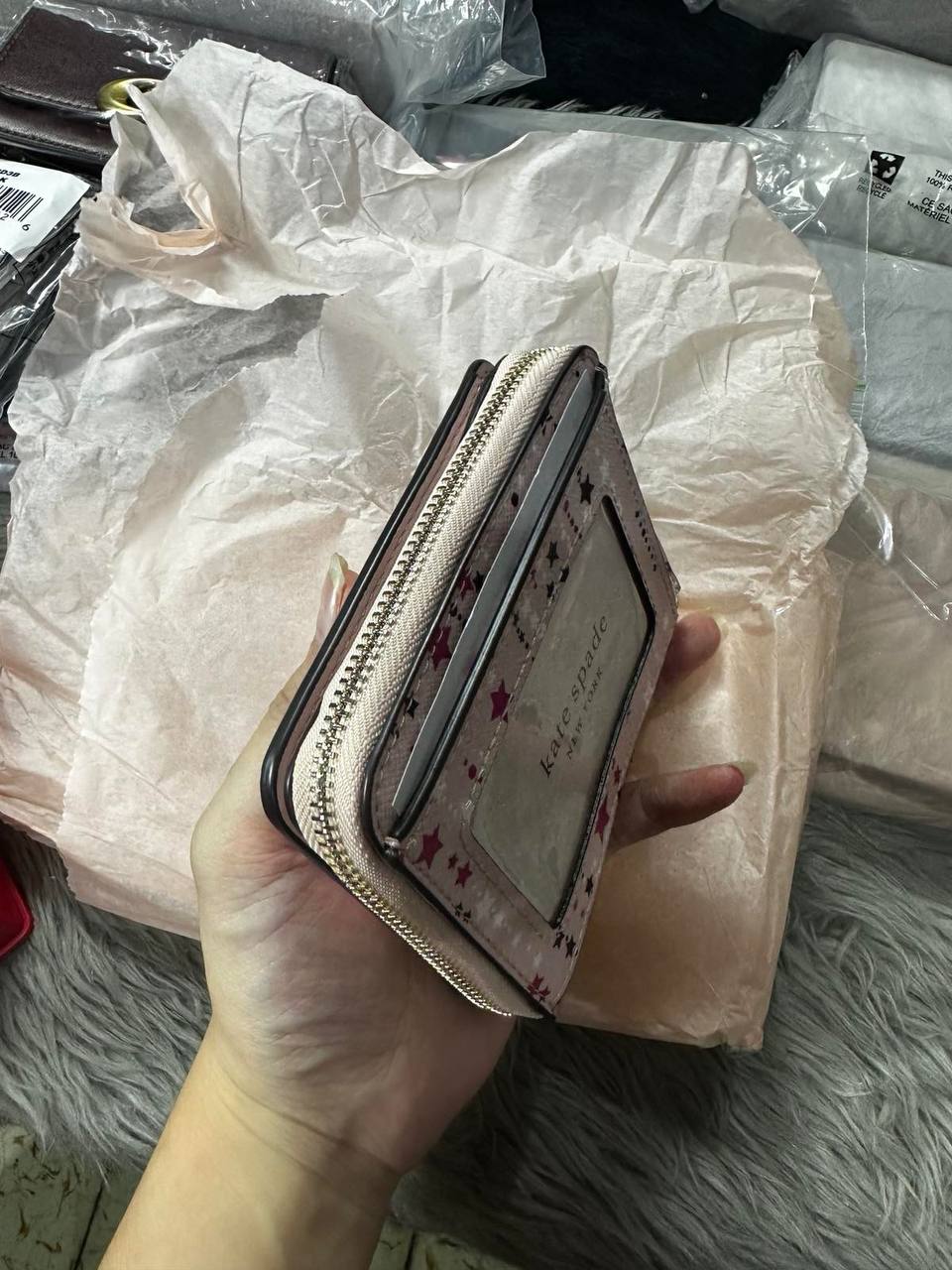 ORIG & IMPORTED Kate Spade KS Glitter Twinkle Stars Small Zip Around Wallet in Pink