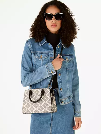 ORIG & IMPORTED KS Signature Spade Flower Small Satchel Bag Black