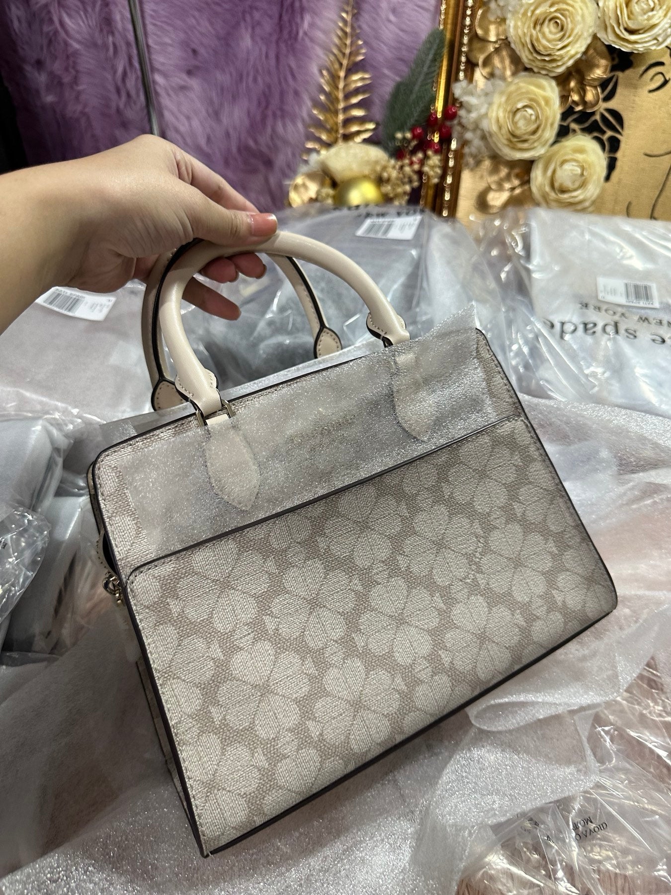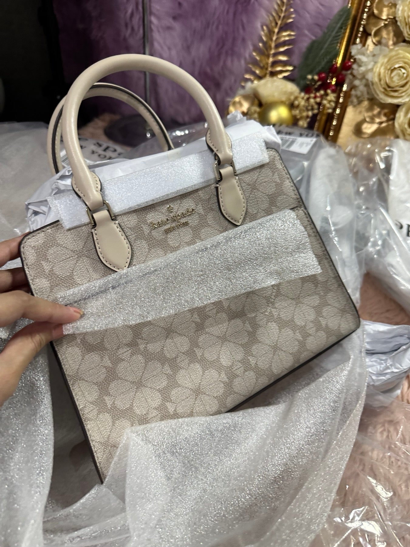 ORIG & IMPORTED KS Signature Spade Flower Small Satchel Bag Dark Beige