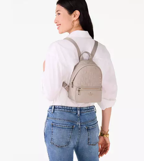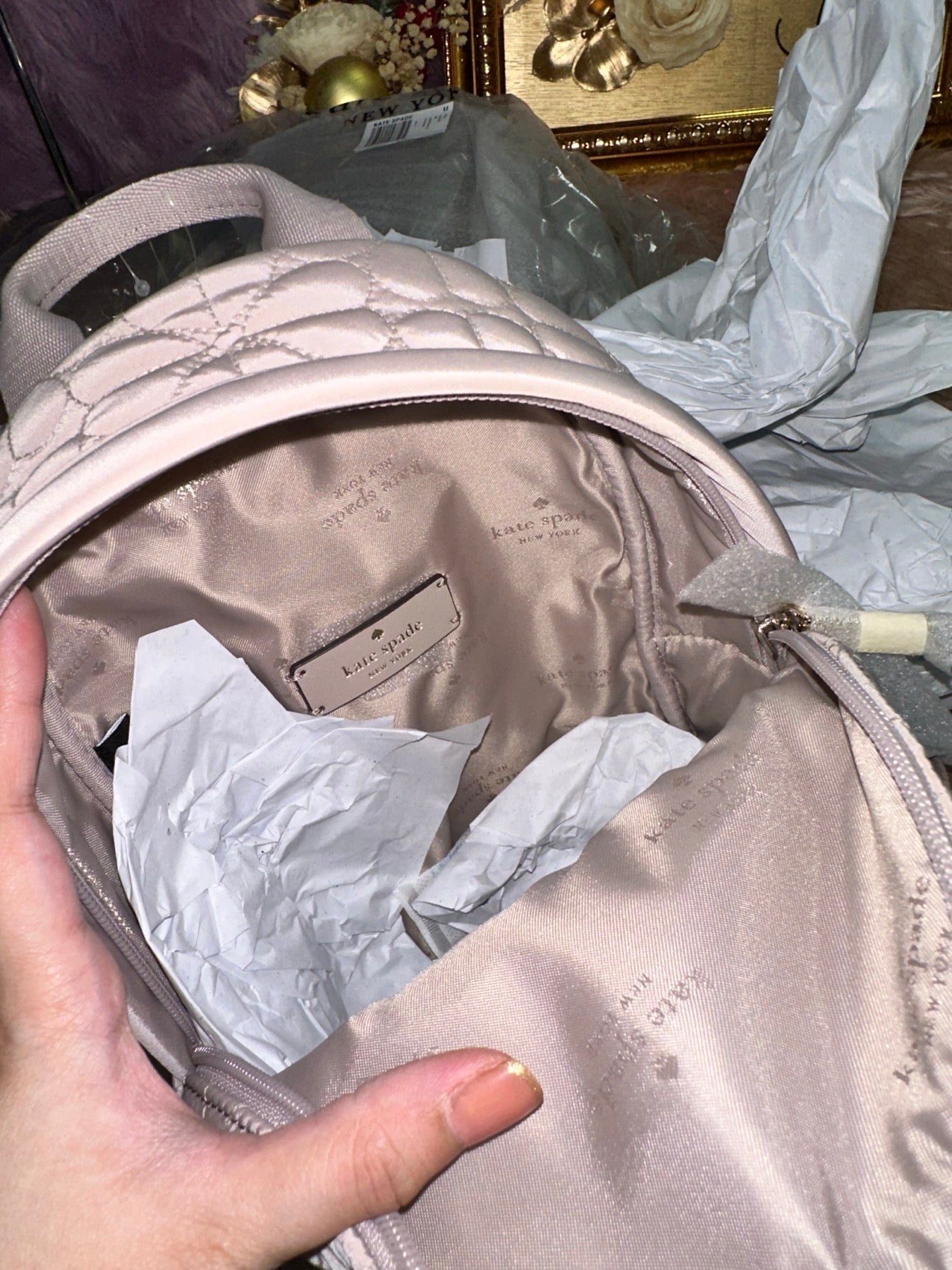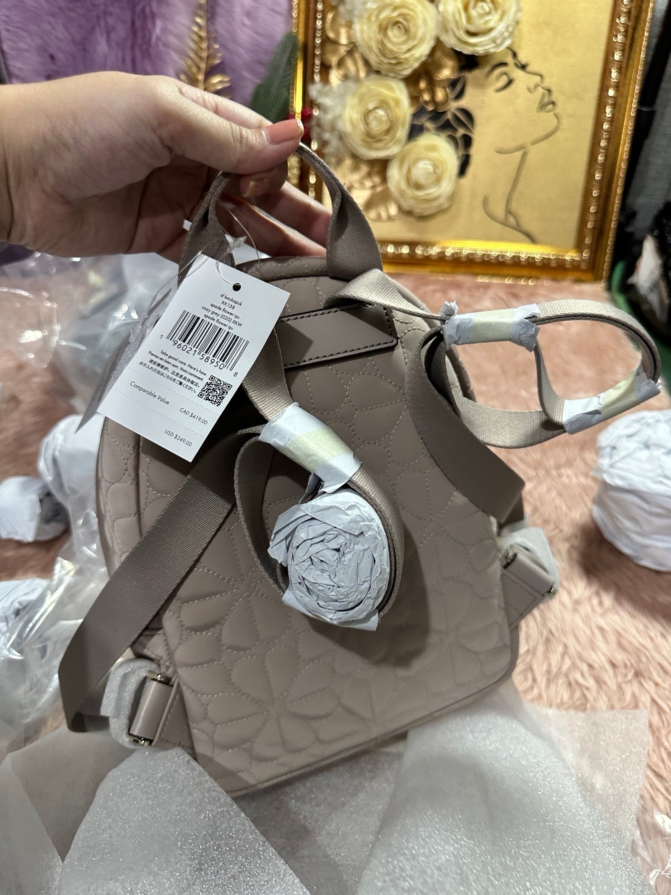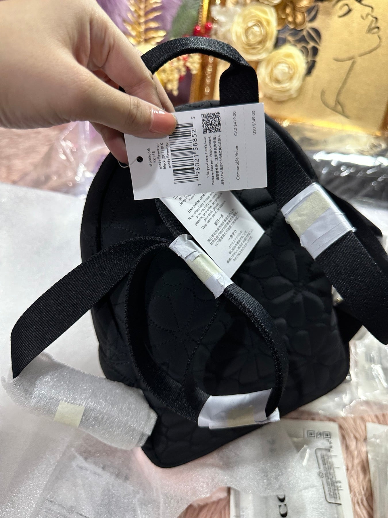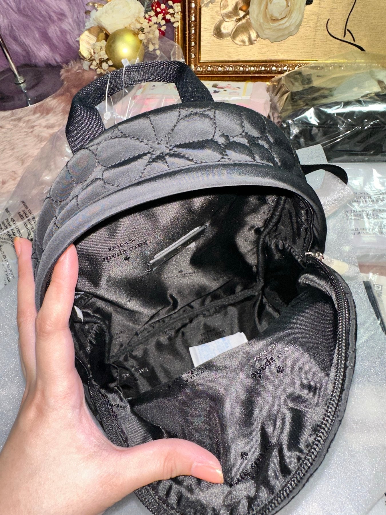 ORIG & IMPORTED KS Spade Flower Quilted Fabric Small Backpack Black Pink Grey