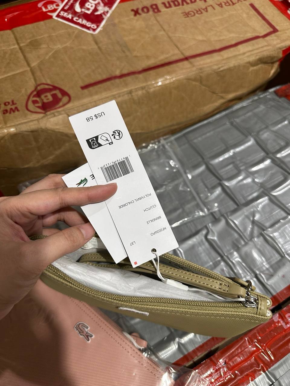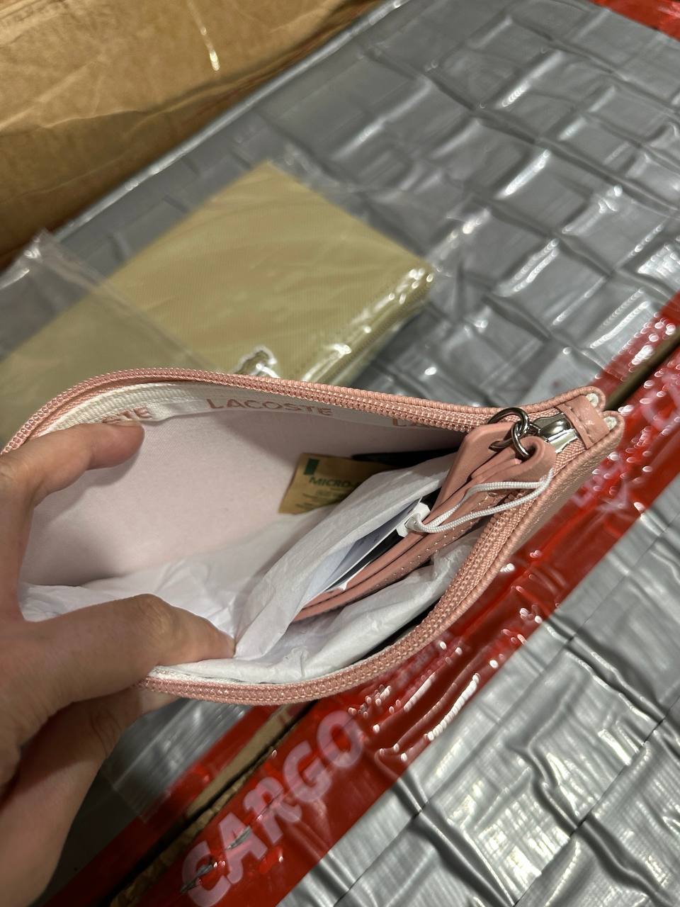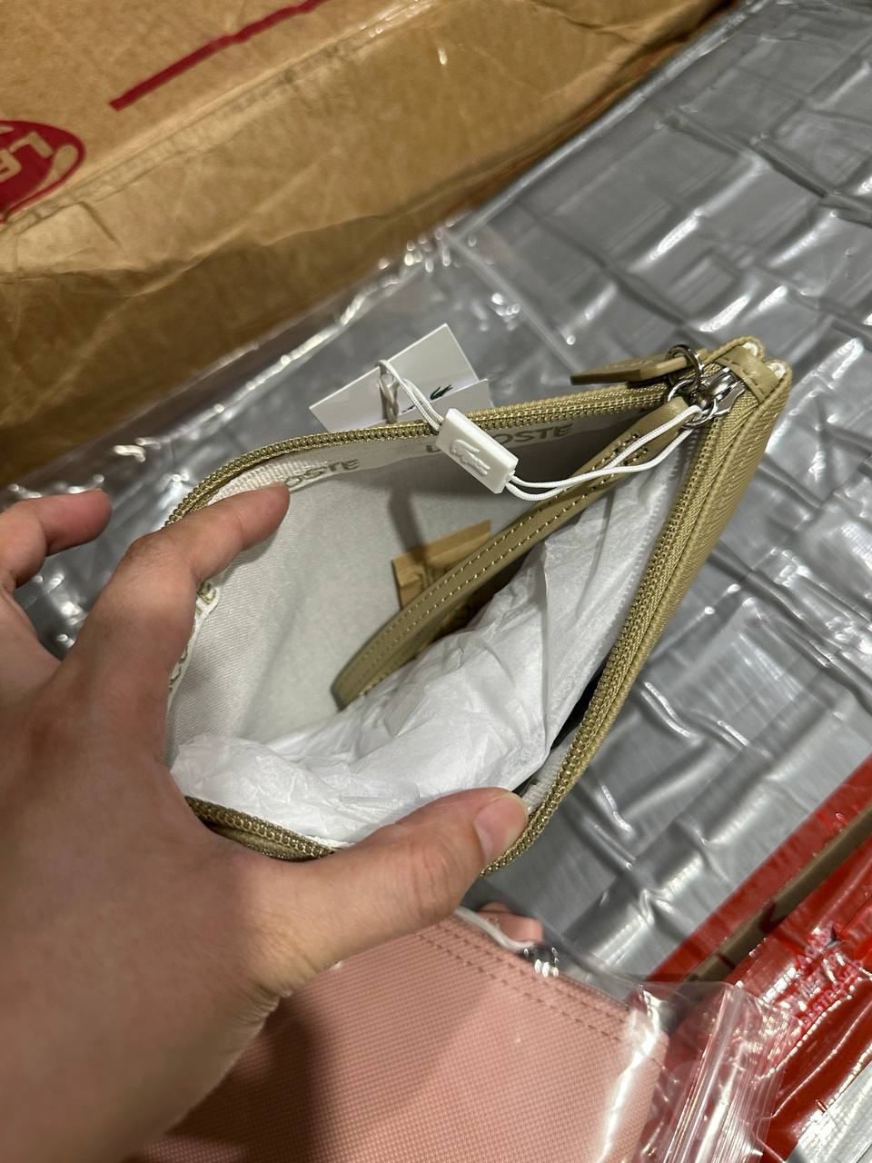 ORIG & IMPORTED Lacoste L.12.12 Concept Zip Clutch Pouch Wristlet Wallet Brown & Pink
