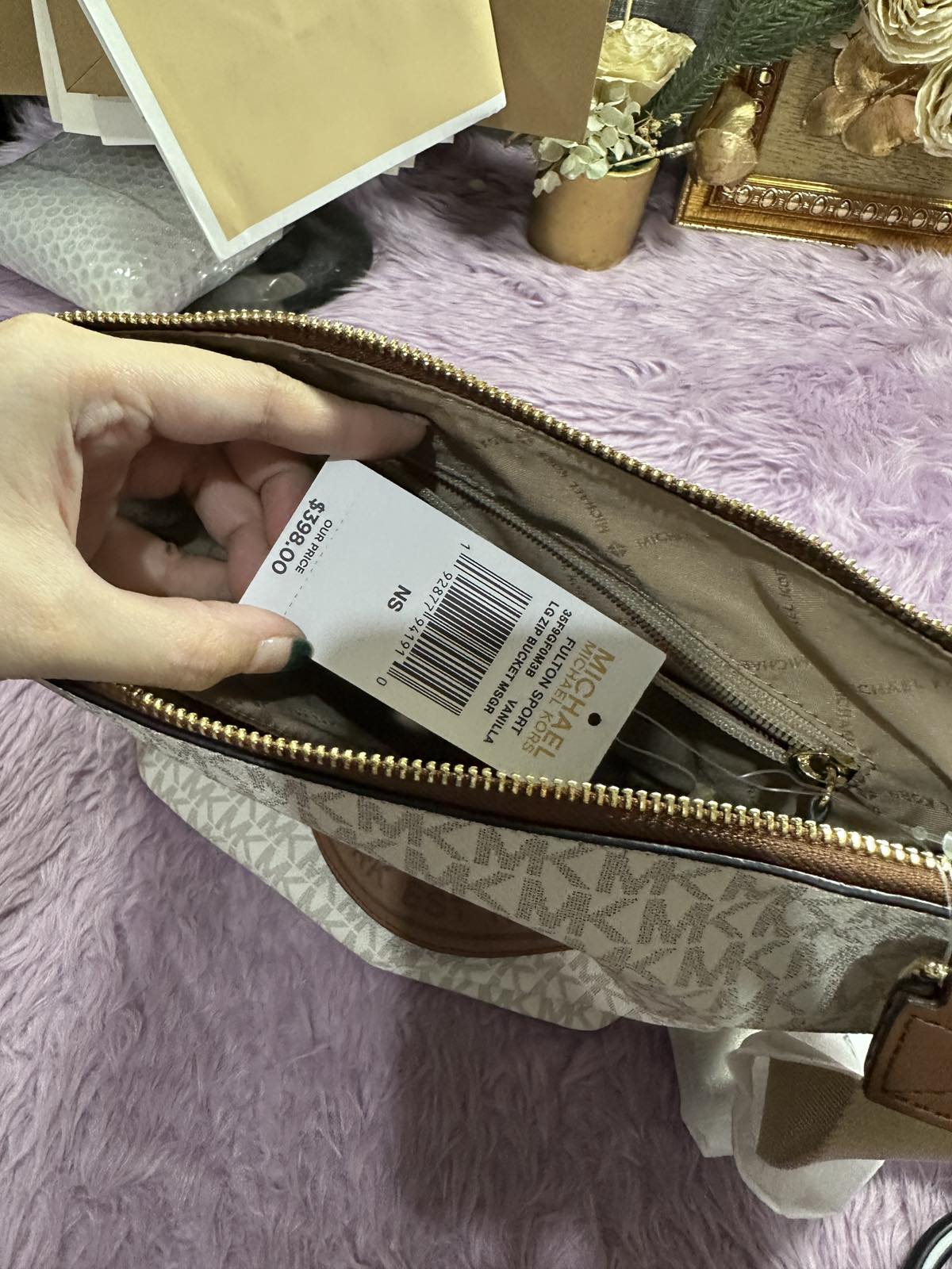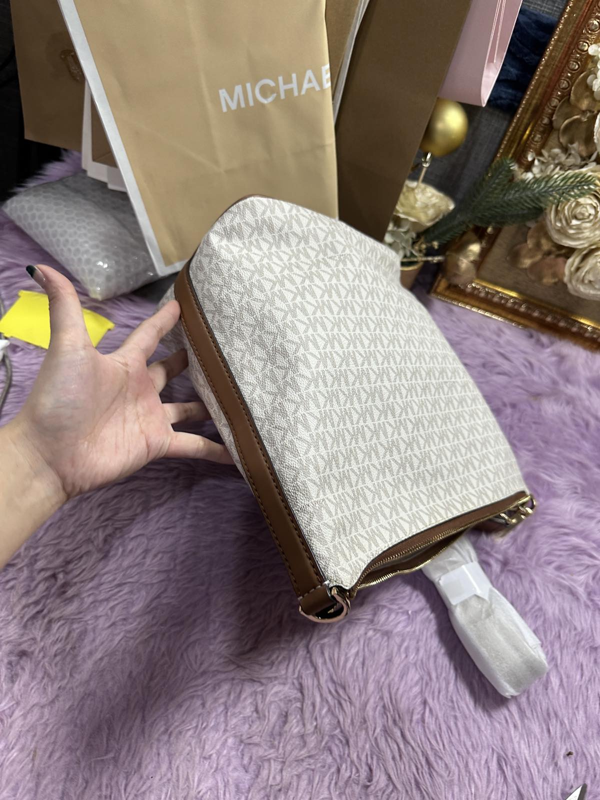 ORIG & IMPORTED Michael Kors MK Fulton Sport Shoulder Bucket Vanilla White Bag