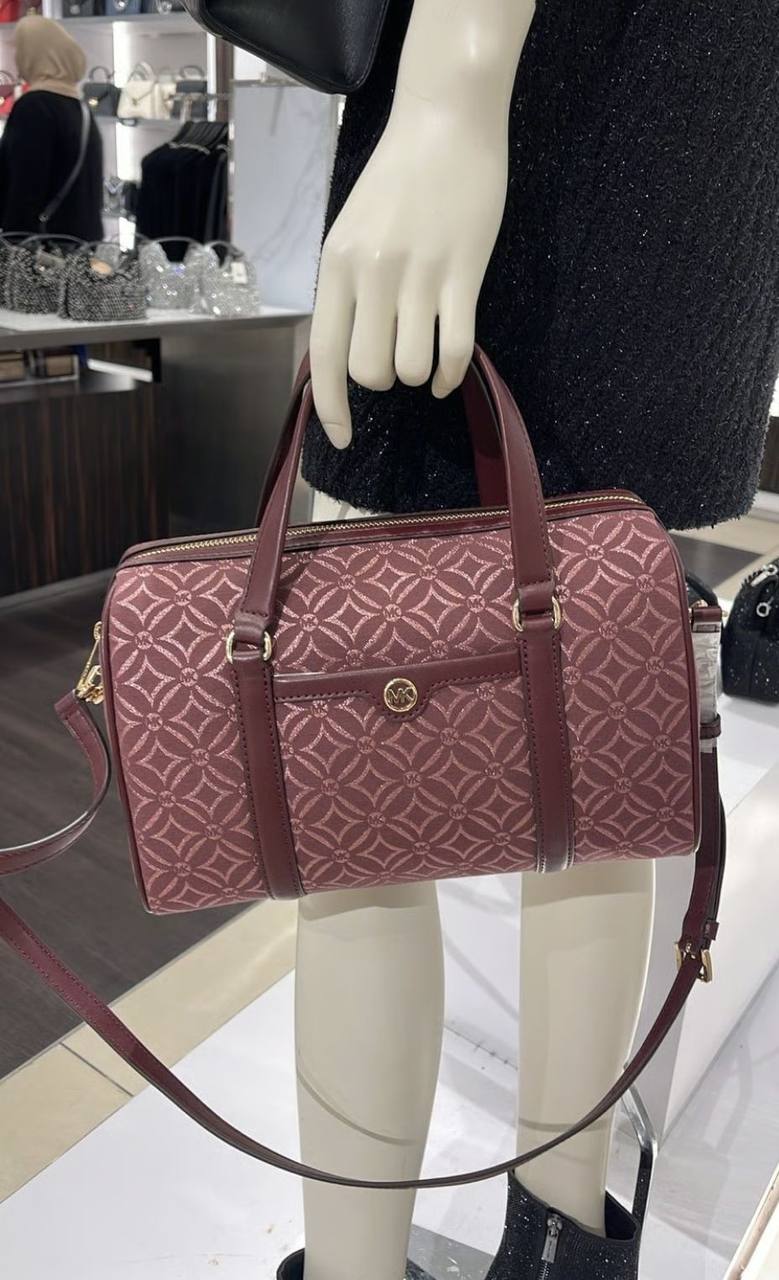 ORIG & IMPORTED MICHAEL KORS MK Medium Duffle Satchel Bag Glitter Oxblood Maroon