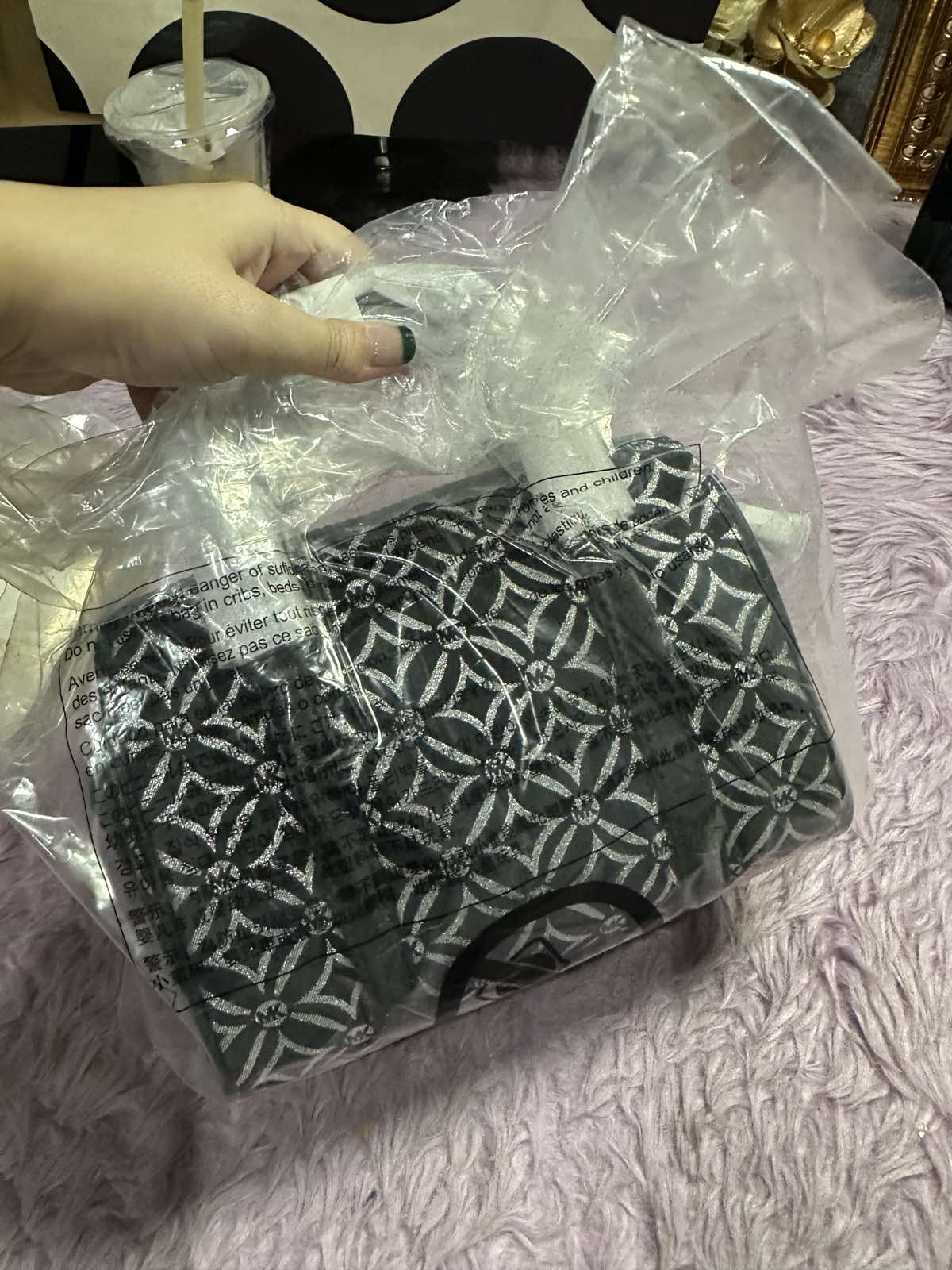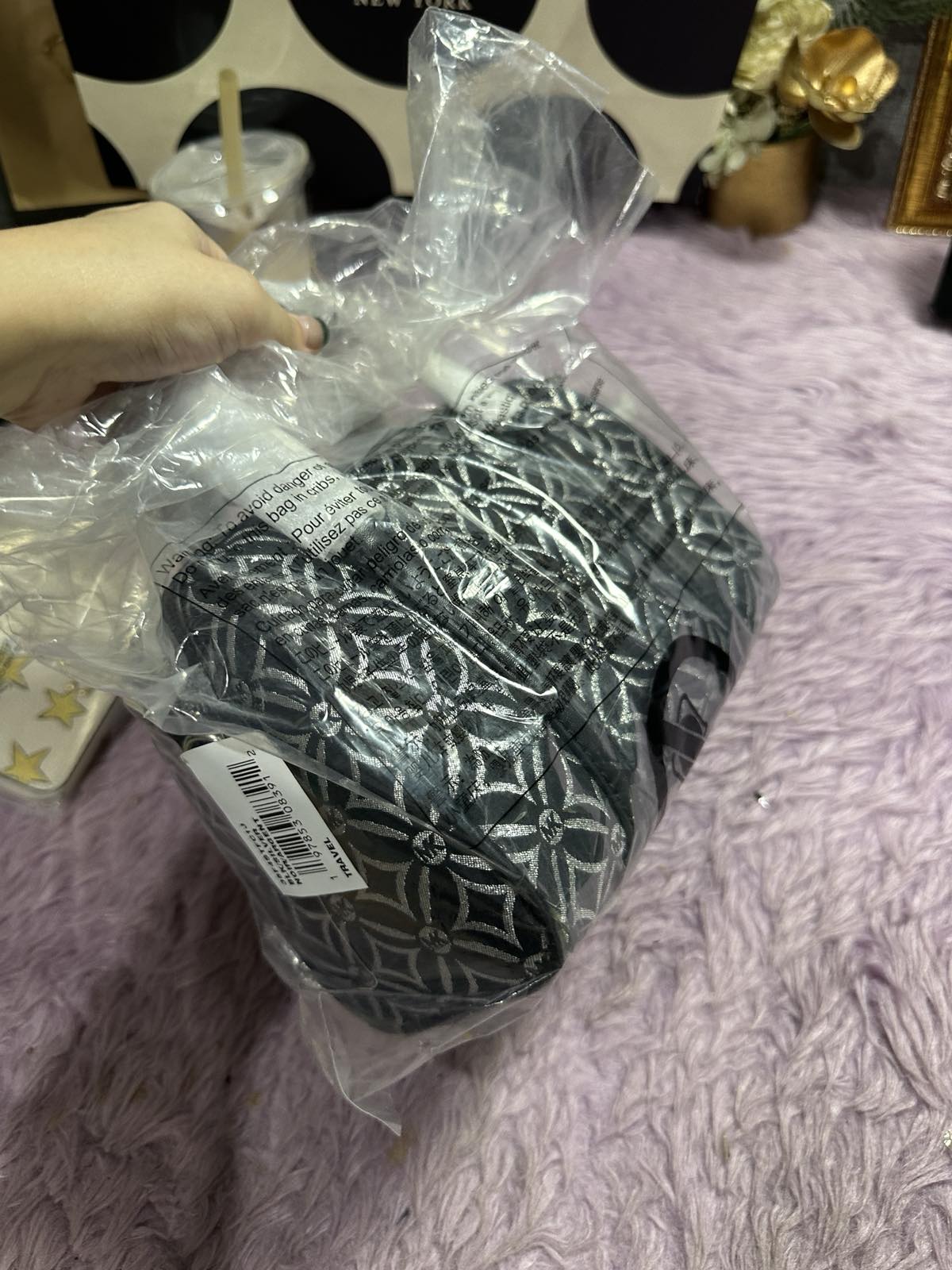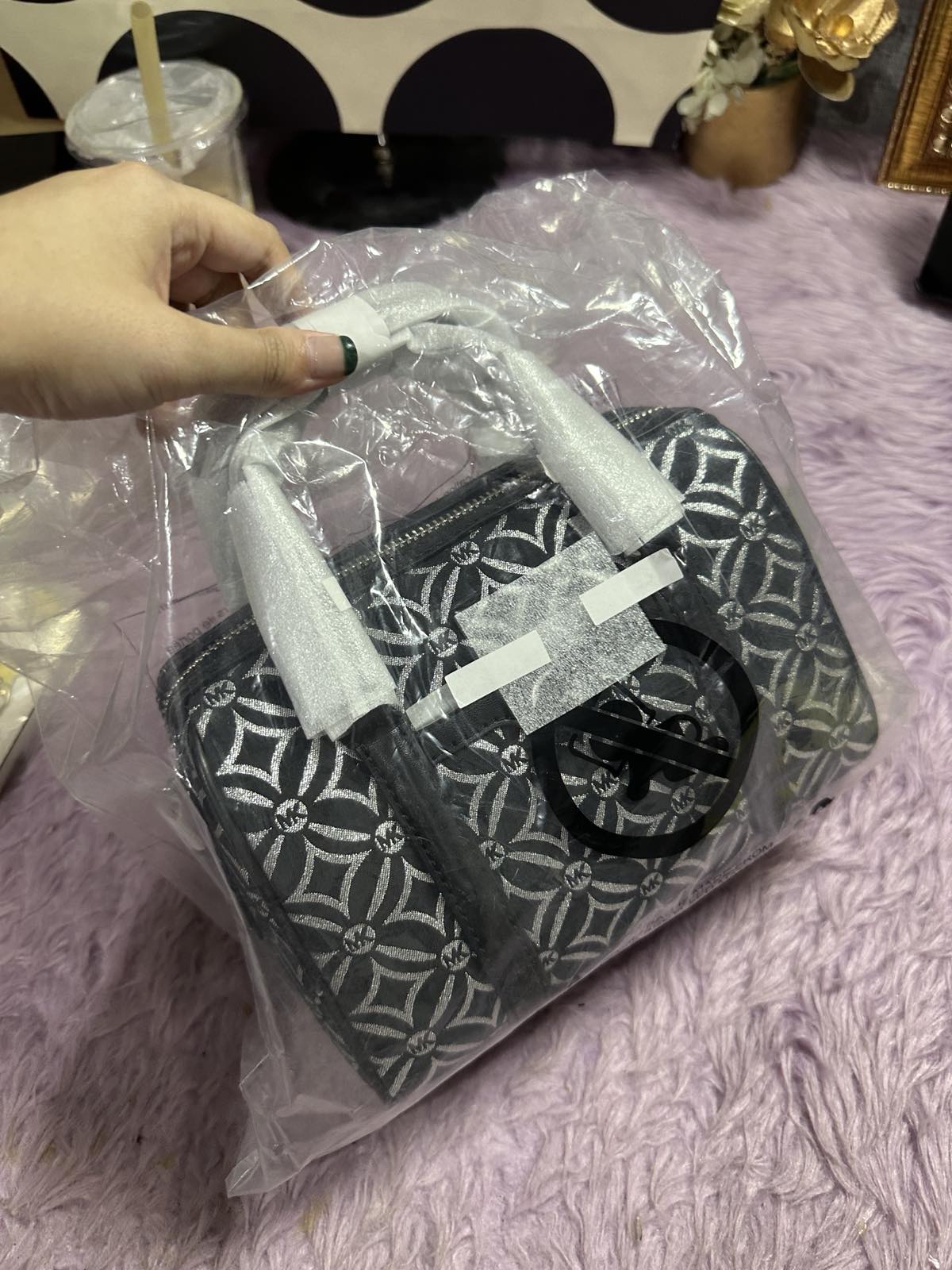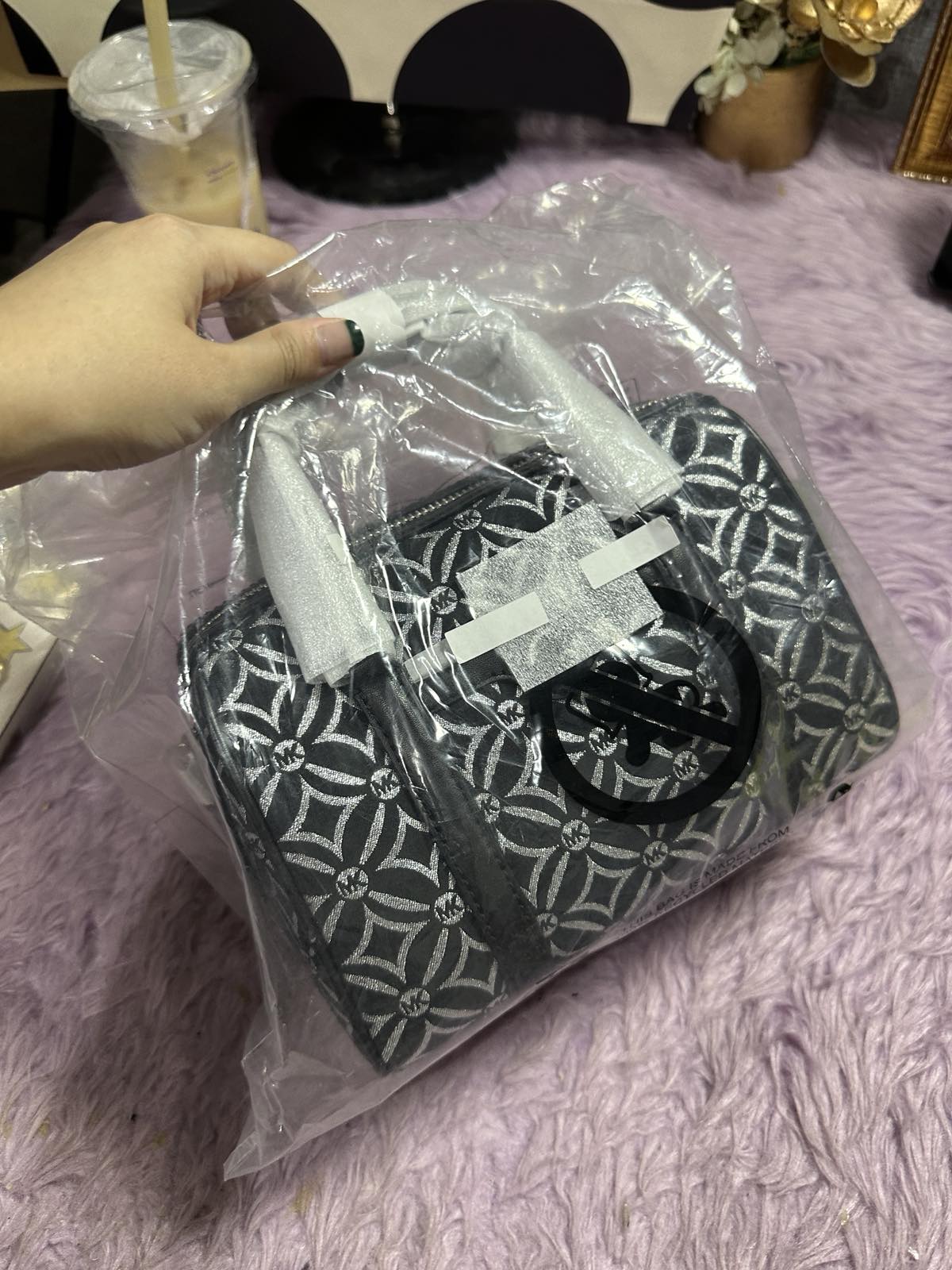 ORIG & IMPORTED Michael Kors MK Mini Small Metallic Duffle Crossbody Black Silver