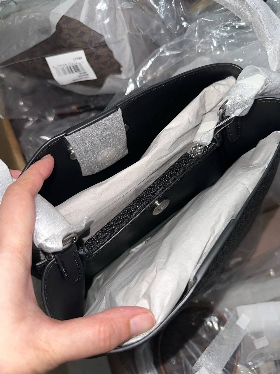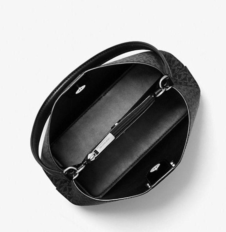 ORIG & IMPORTED Michael Kors MK Pratt Medium Signature Logo and Metallic Shoulder Bag Black
