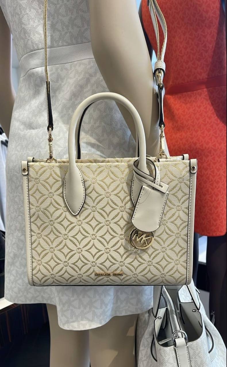 ORIG & IMPORTED MICHAEL KORS MK Small Mirella Satchel Bag Graphic Logo Glitter Ivory White