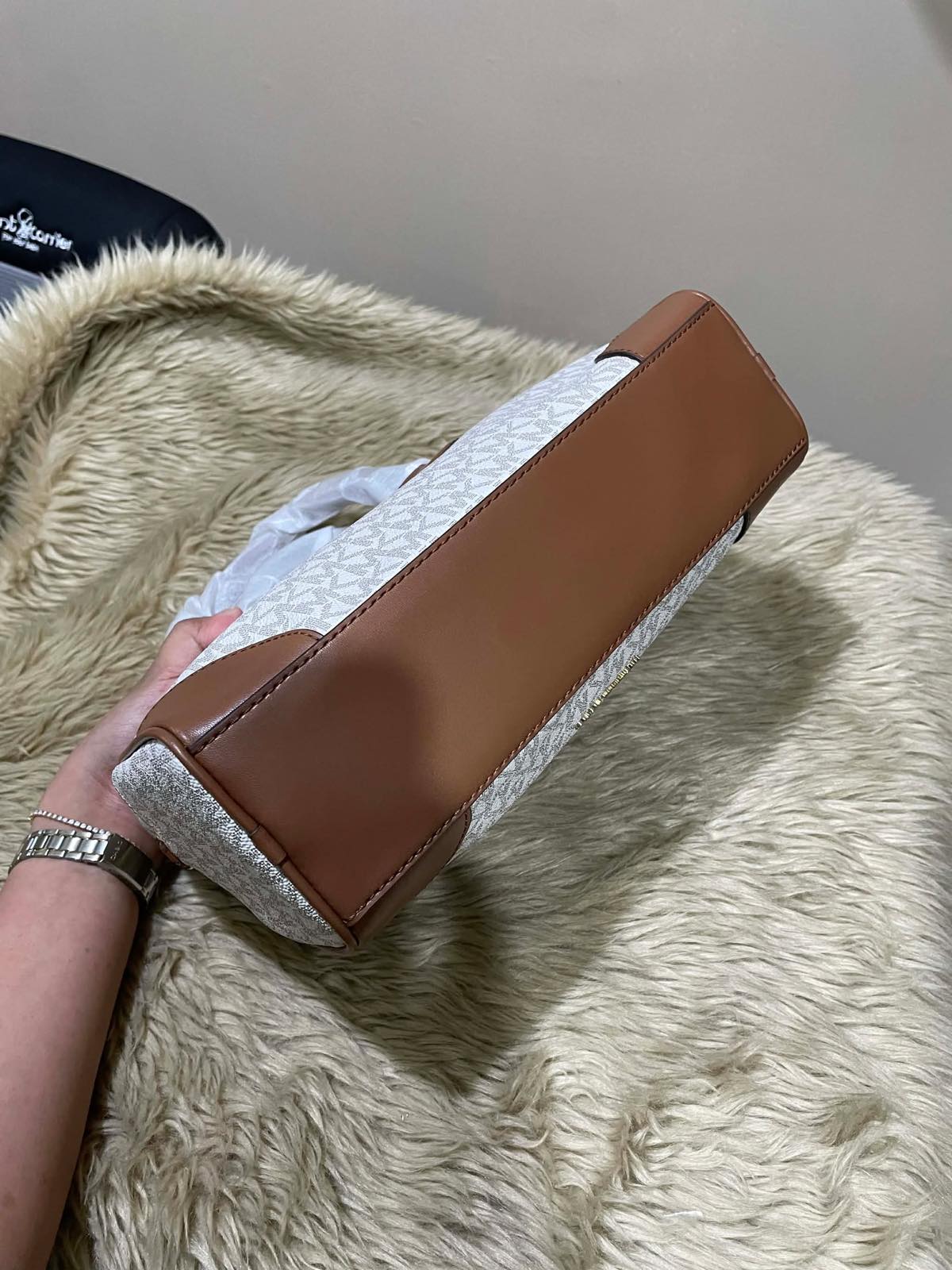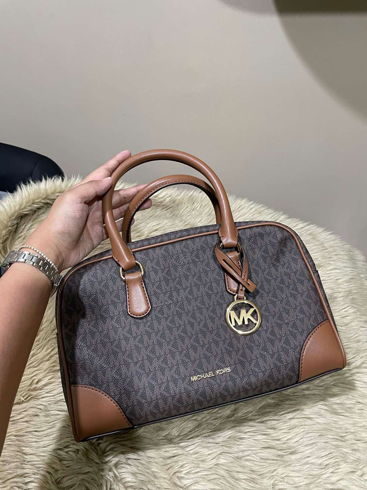 ORIG & IMPORTED Michael Kors MK Thompson Medium Signature Logo Satchel Duffle Brown/White Bag