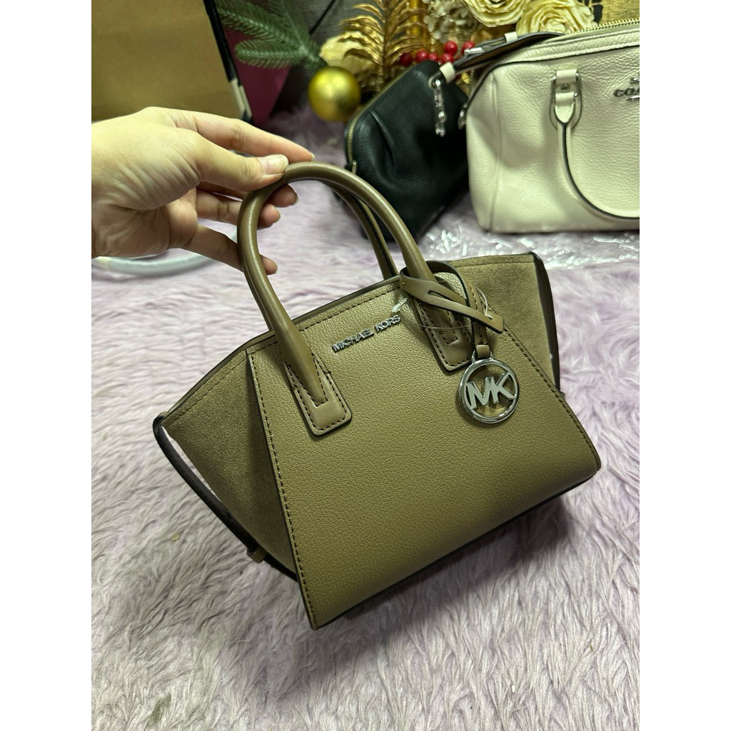 ORIG & IMPORTED MK Avril Extra-Small Leather and Suede Satchel Black Brown White Small Bag