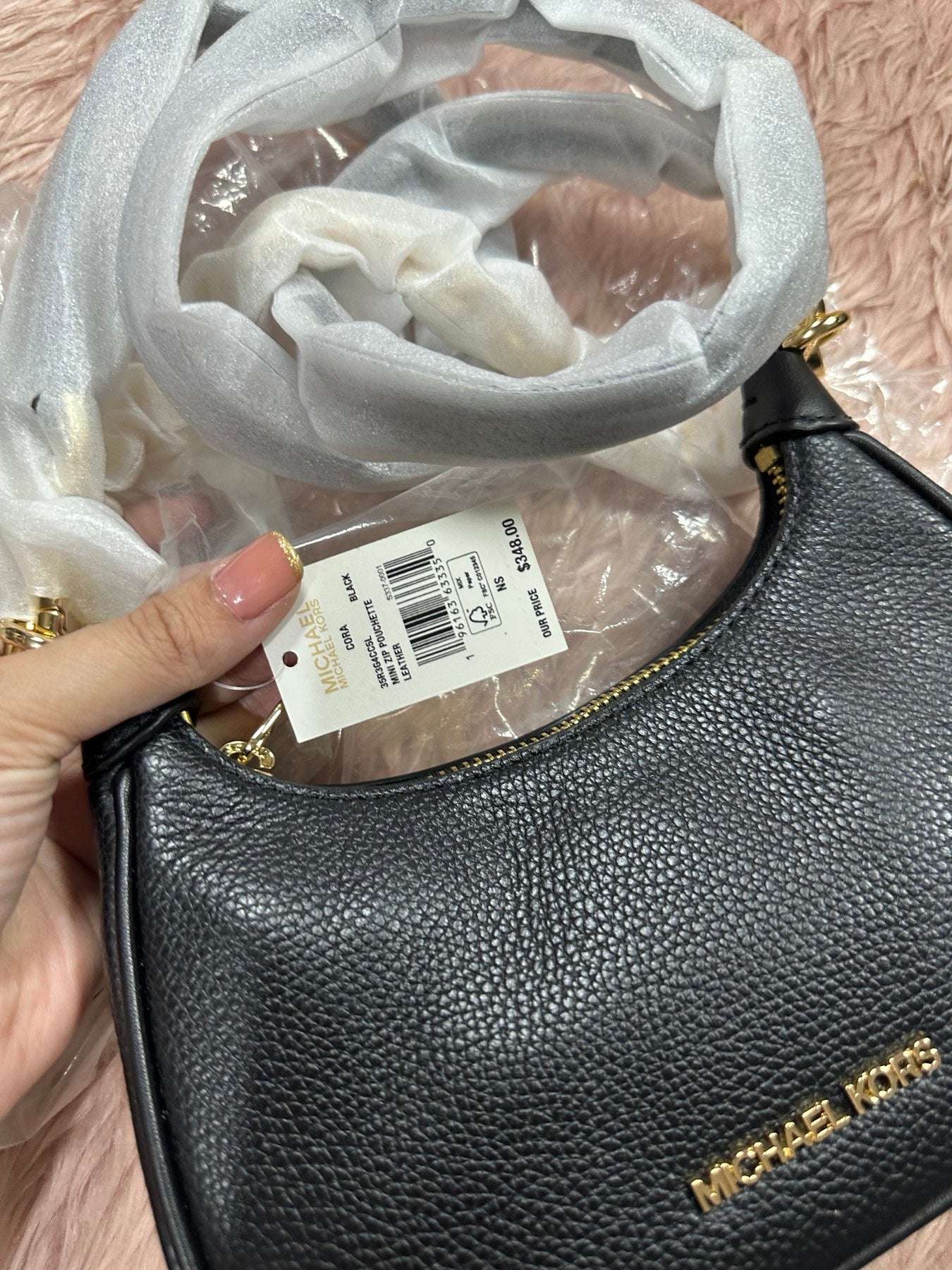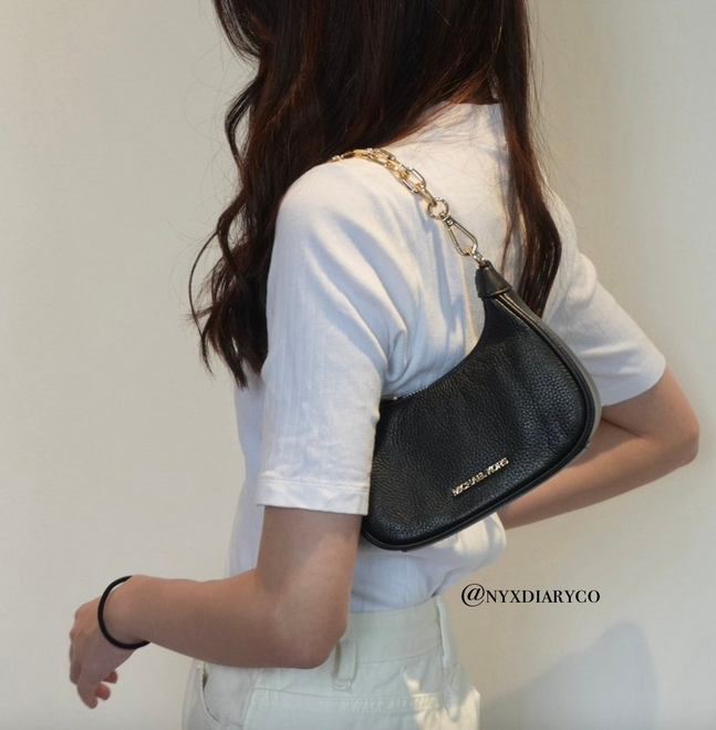 ORIG & IMPORTED MK Cora Extra-Small XS Pebbled Leather Shoulder Chain Bag Black