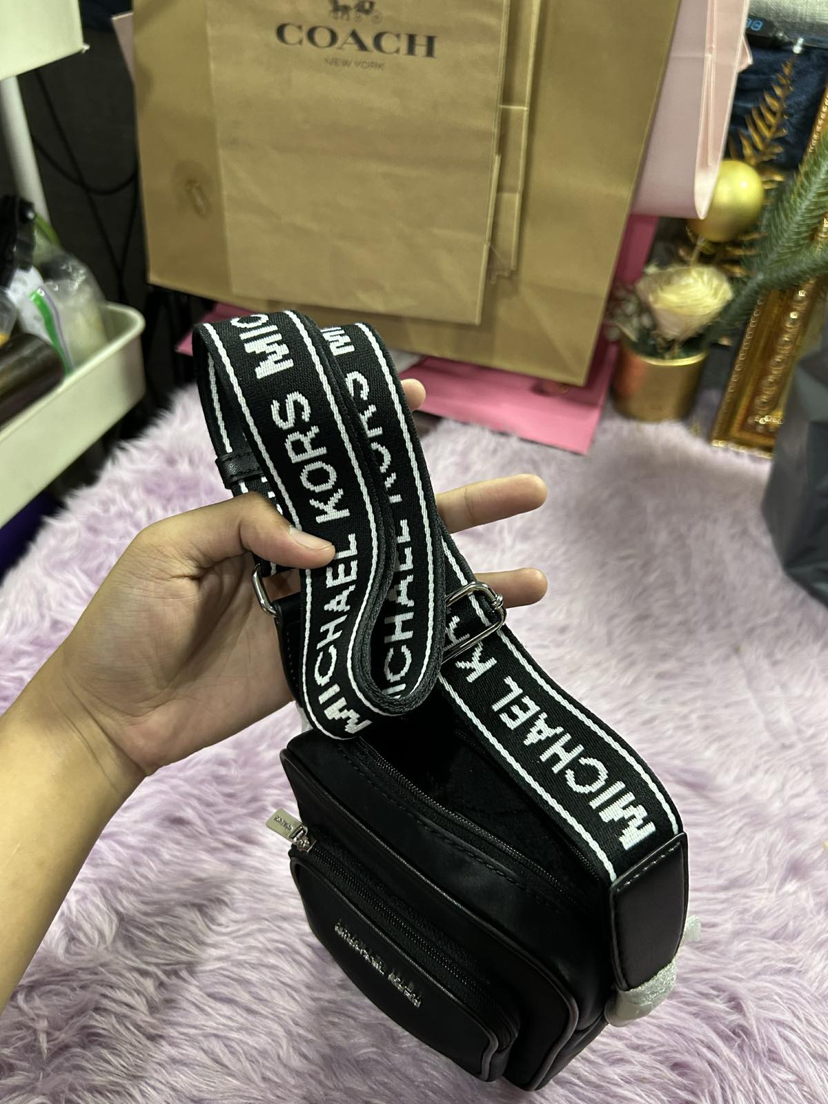 ORIG & IMPORTED MK Khai Nylon Crossbody Small Phone Black Bag