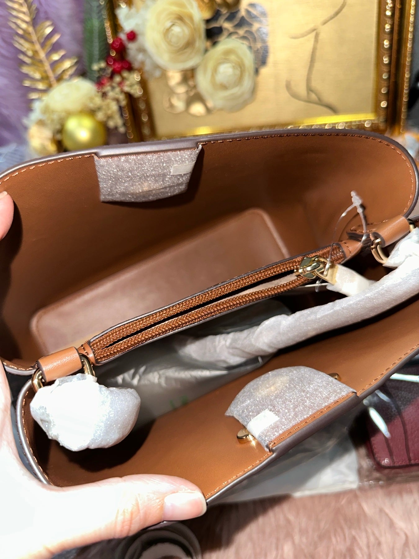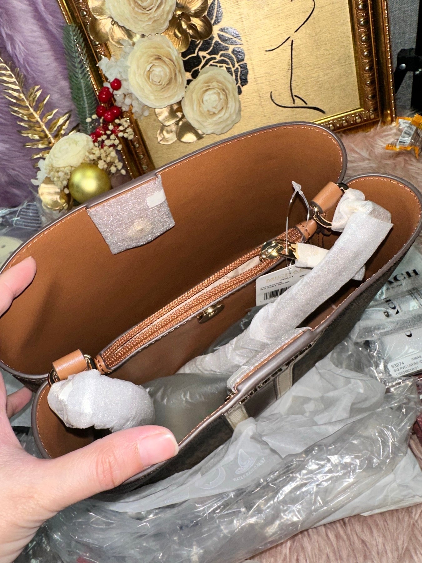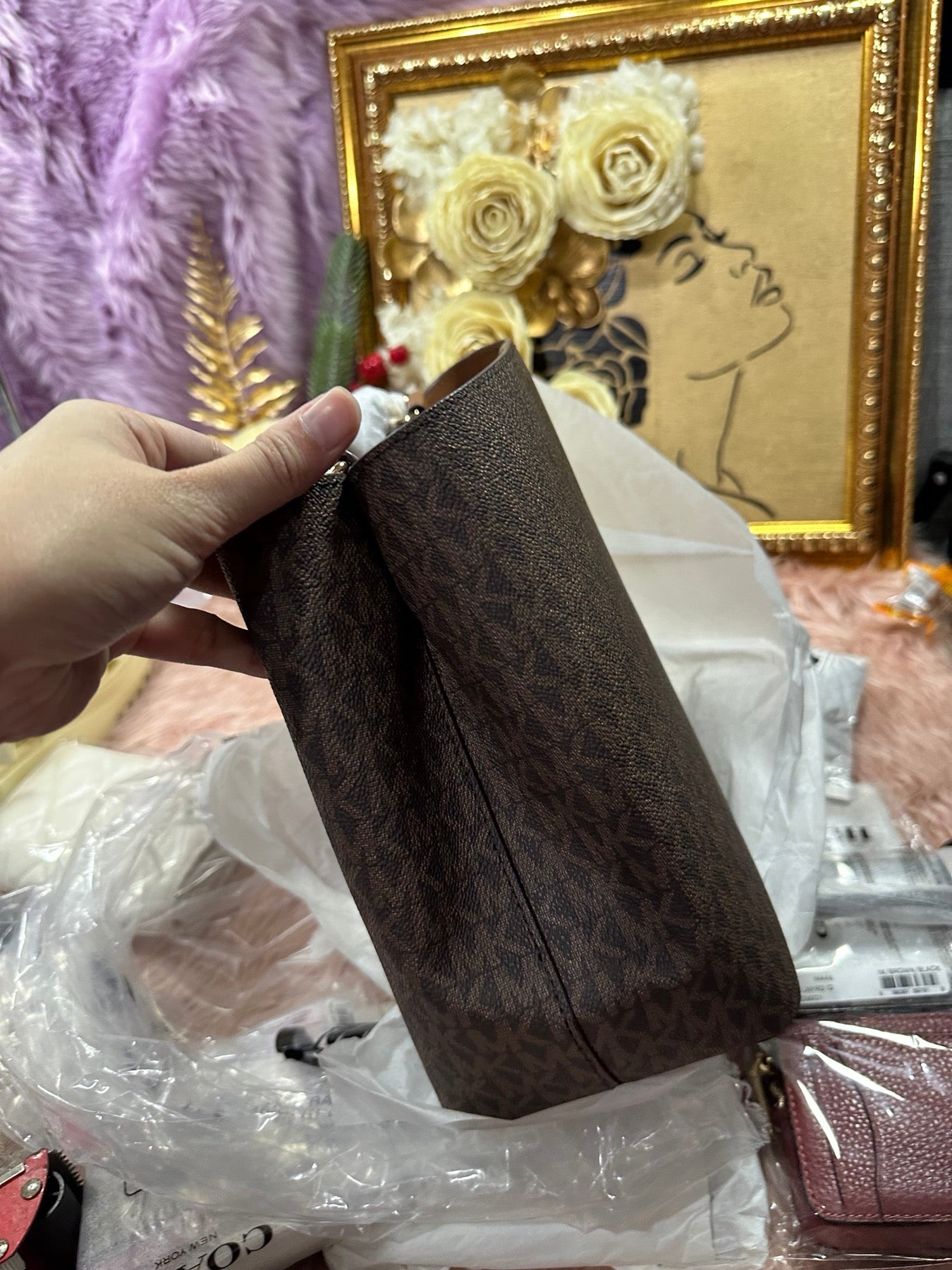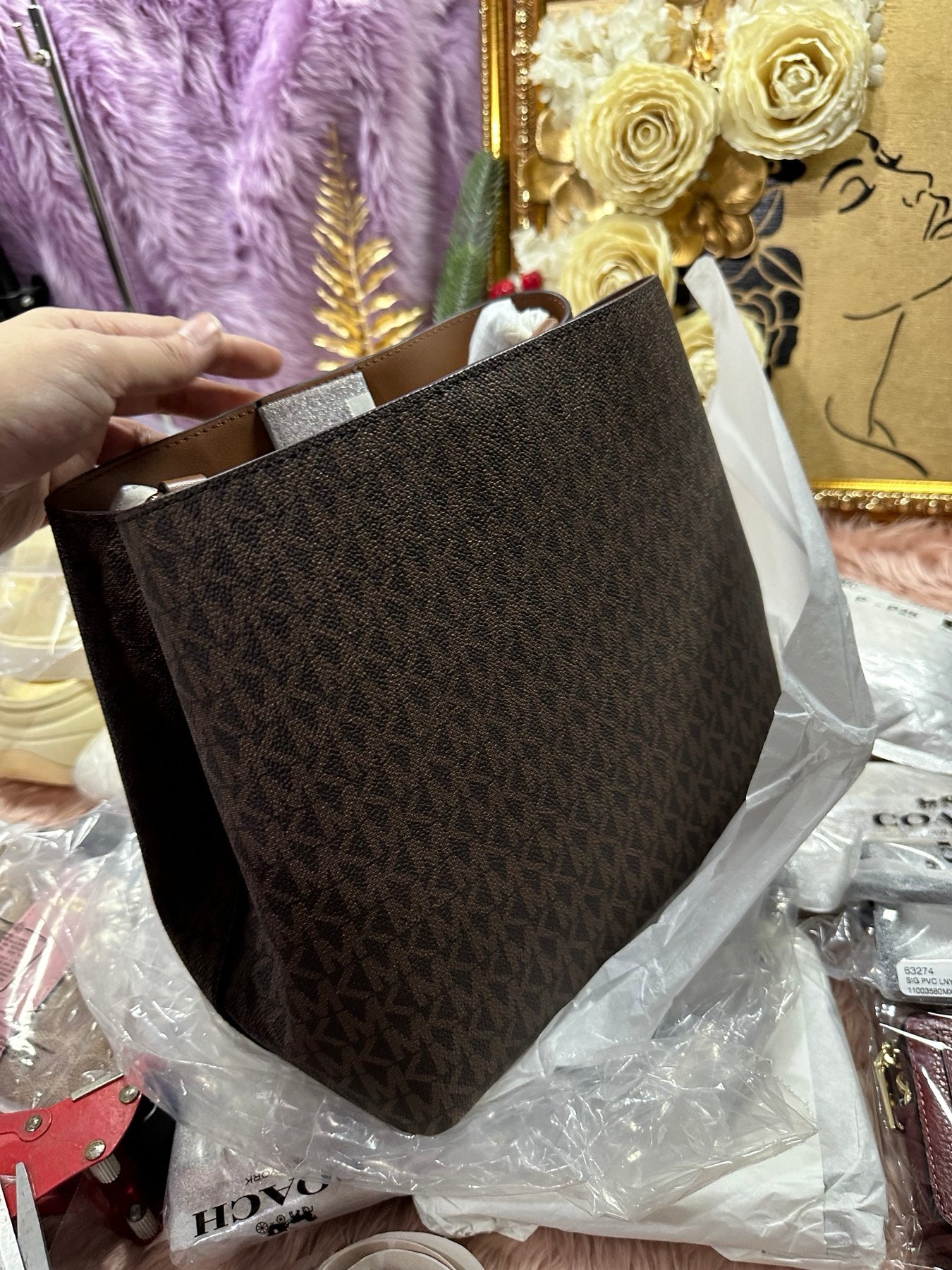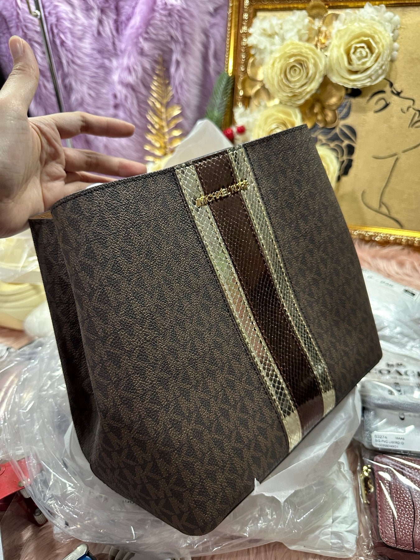 ORIG & IMPORTED MK Pratt Medium Signature Logo and Metallic Shoulder Bag Brown