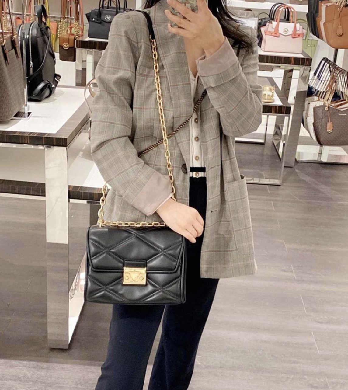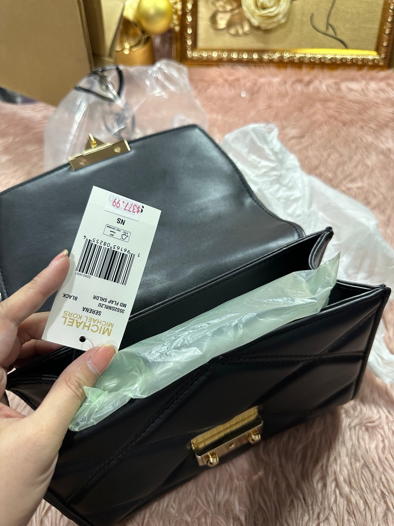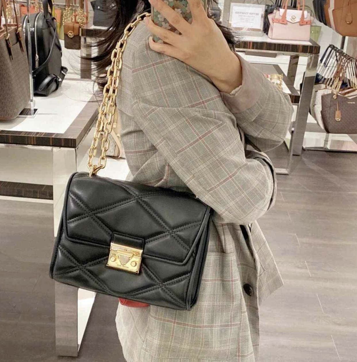 ORIG & IMPORTED MK Serena Medium Quilted Flap Shoulder Bag Black