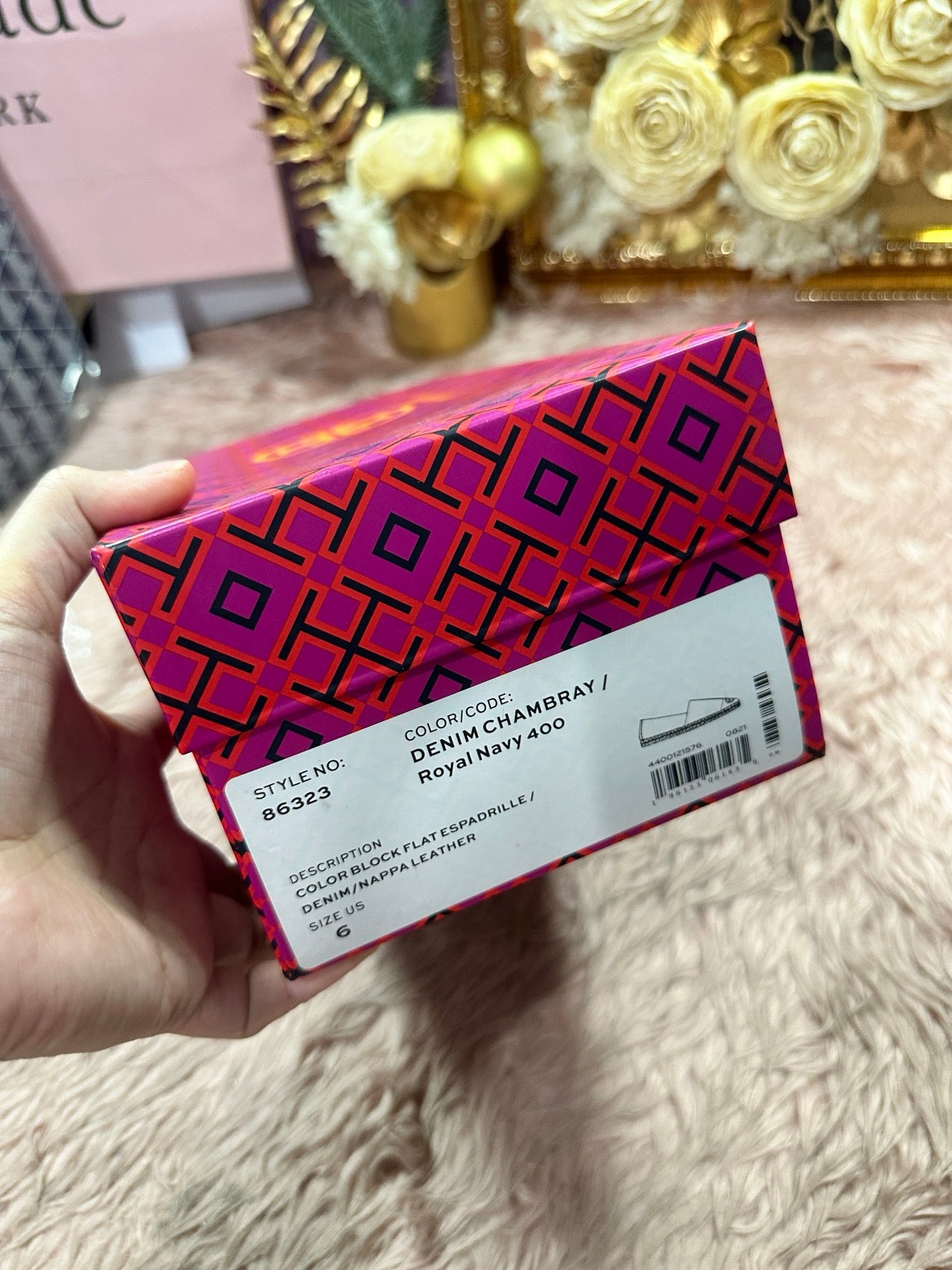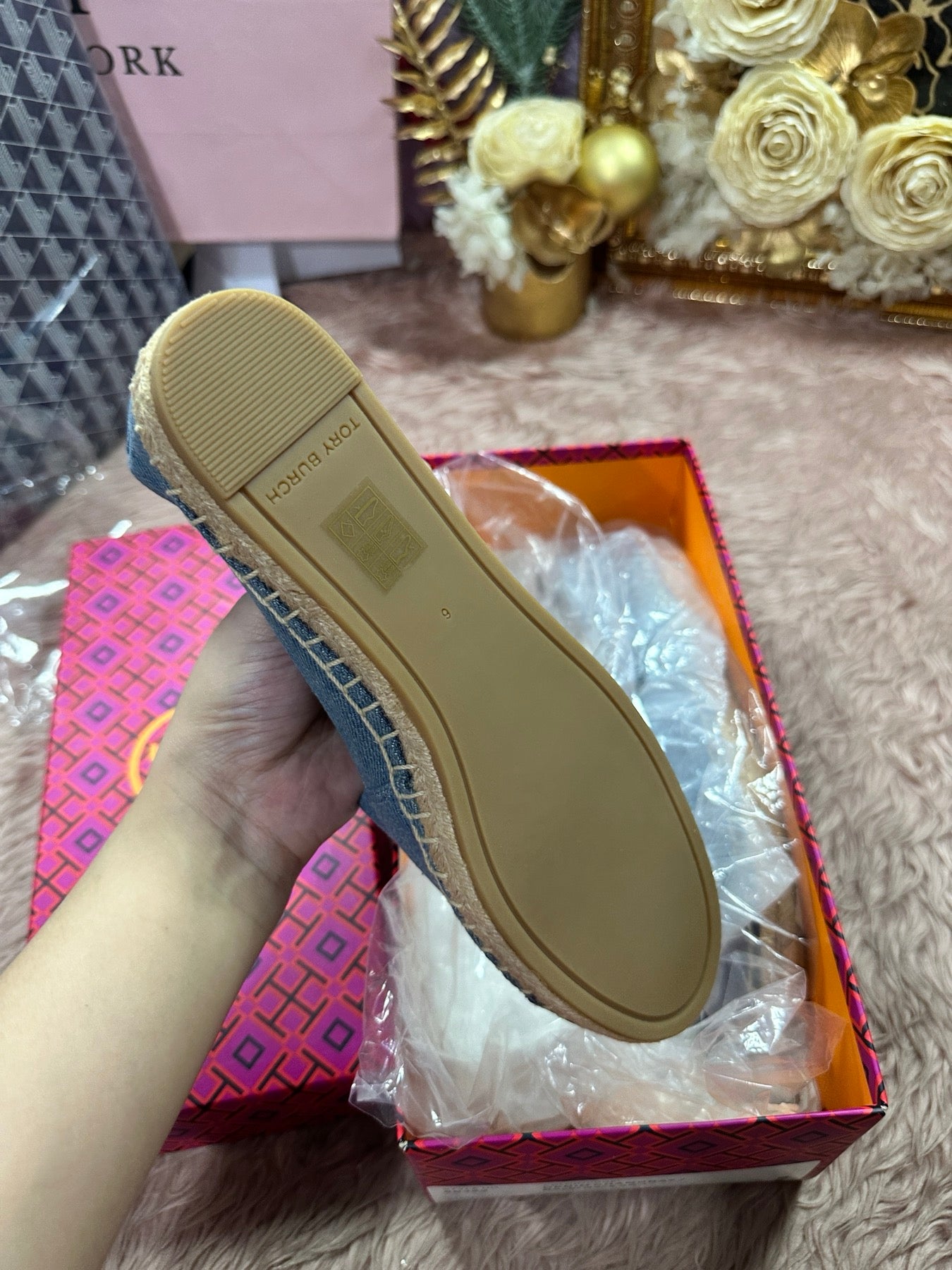 ORIG & IMPORTED Tory Burch Denim Chambray Blue Flat Espadrille Shoe