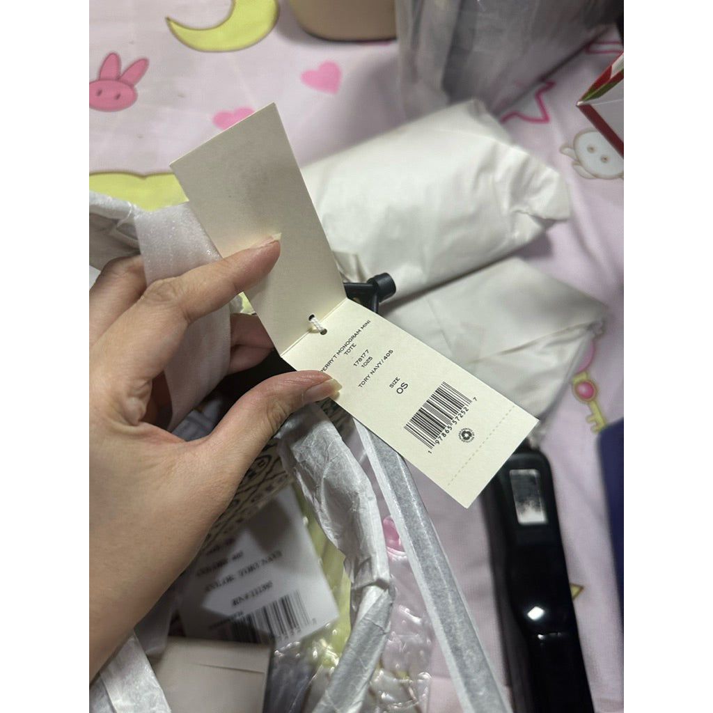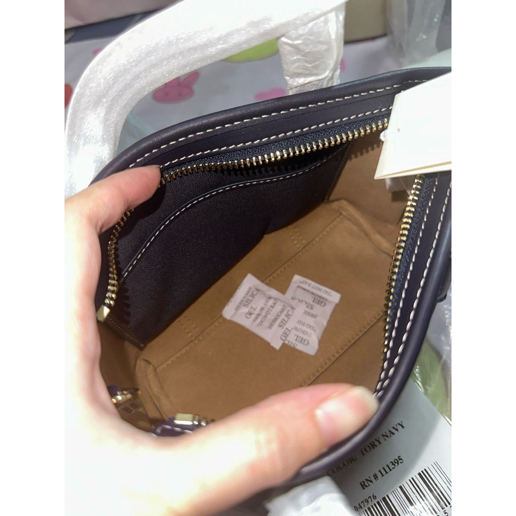 ORIG & IMPORTED Tory TB T Monogram Mini Perry Tote Navy Blue Bag
