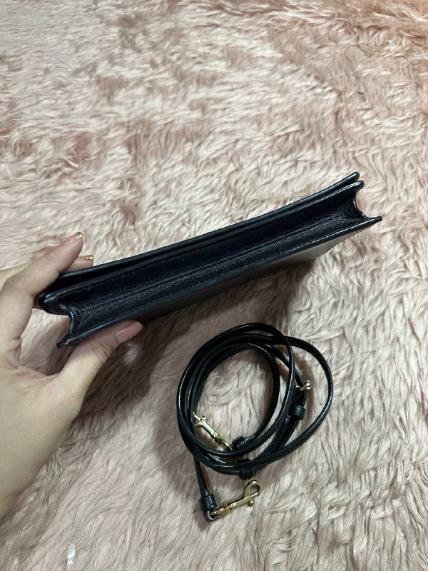 ORIG Preloved COACH Anna Foldover Crossbody Clutch Small Bag Signature Brown Black